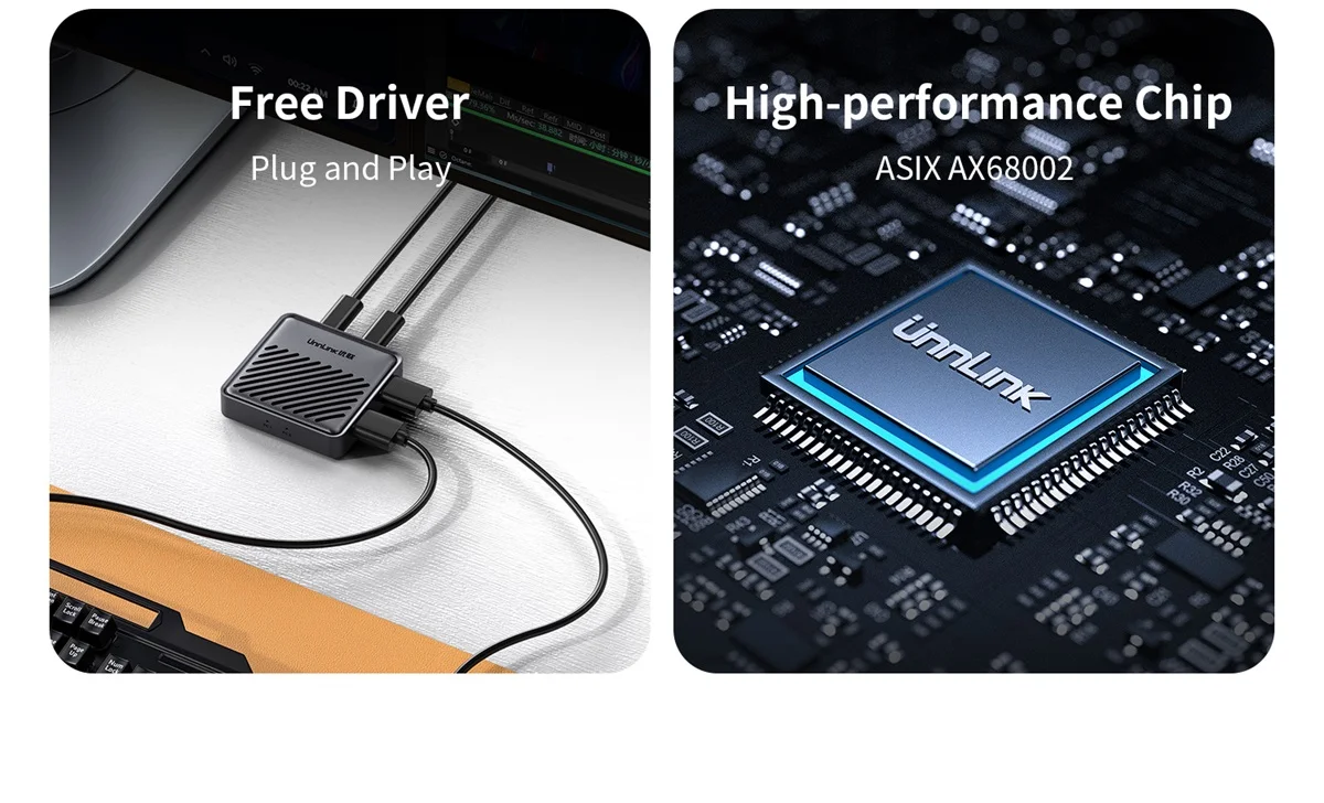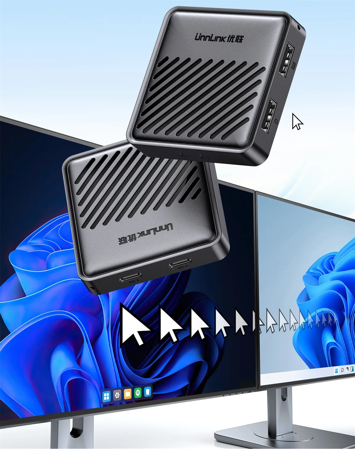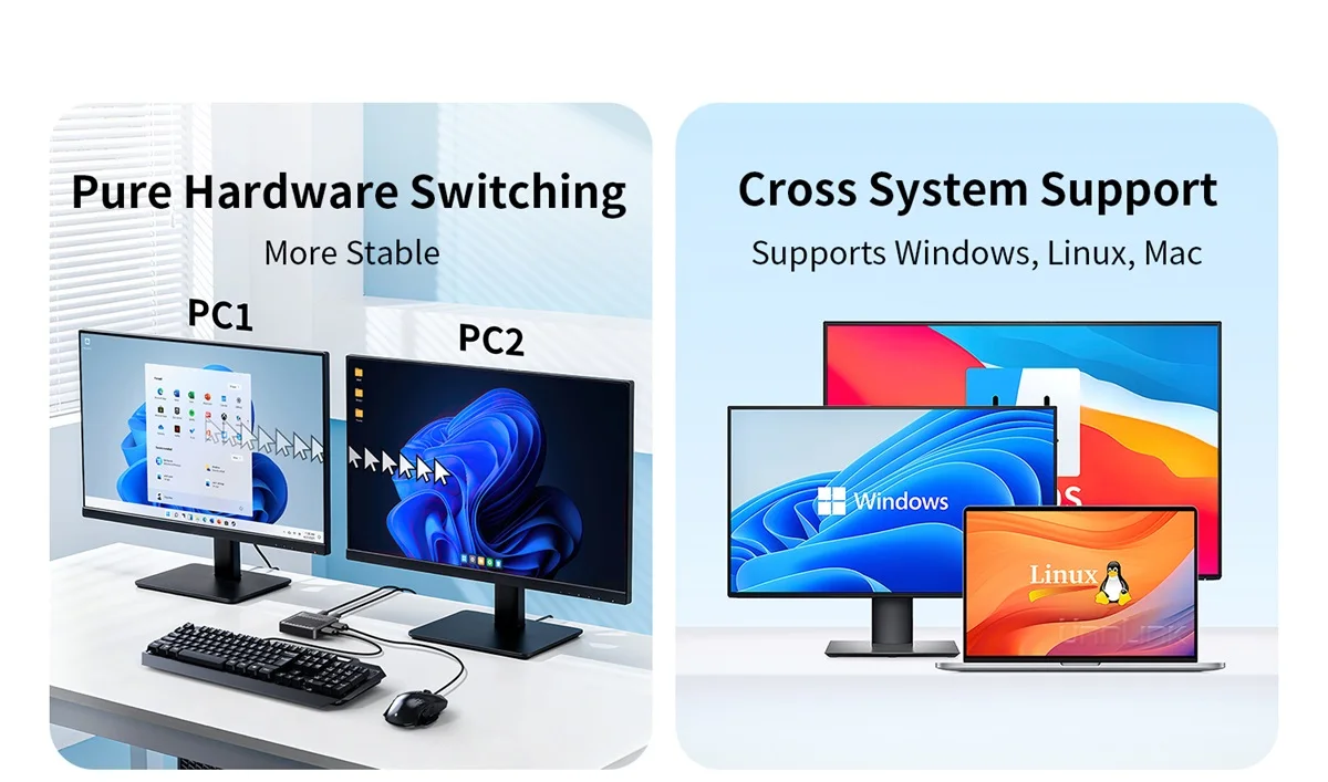 Перекрестный экран мыши Unnlink без рамок, два компьютера доступают одну мышь и клавиатуру. USB-переключатель KVM для Windows, Mac, Linux.