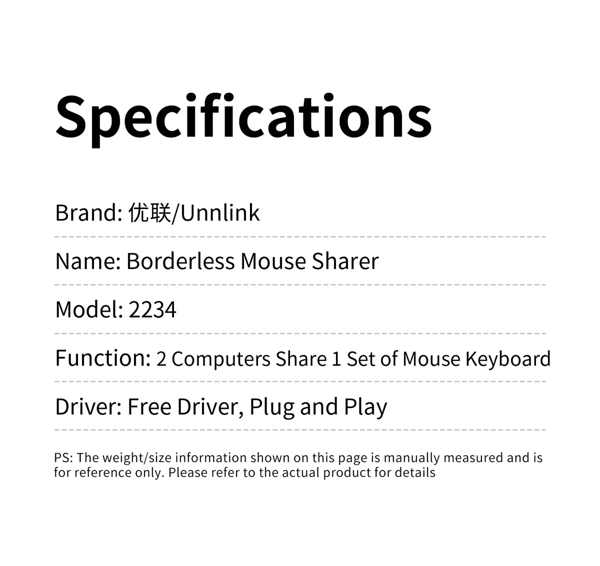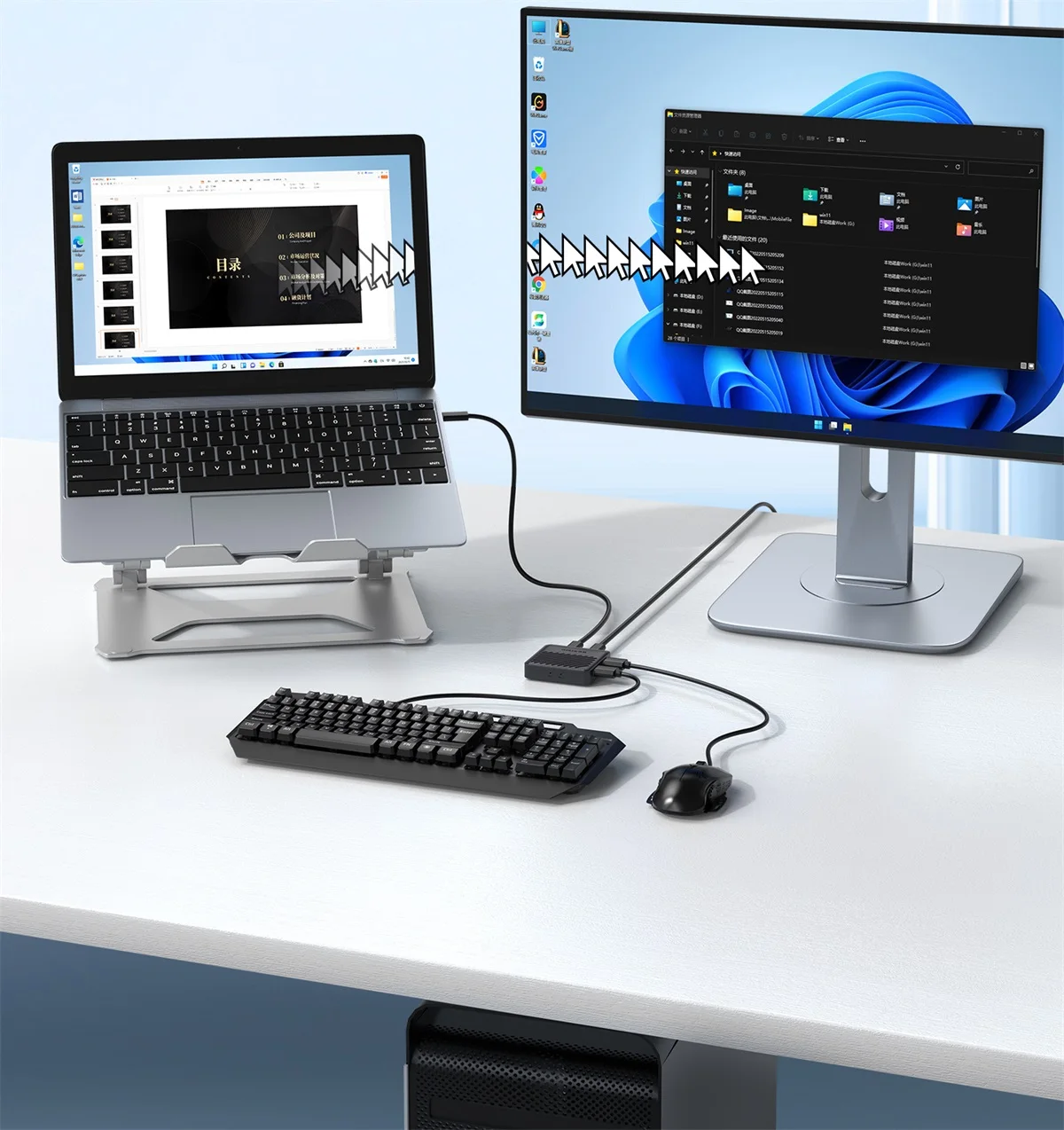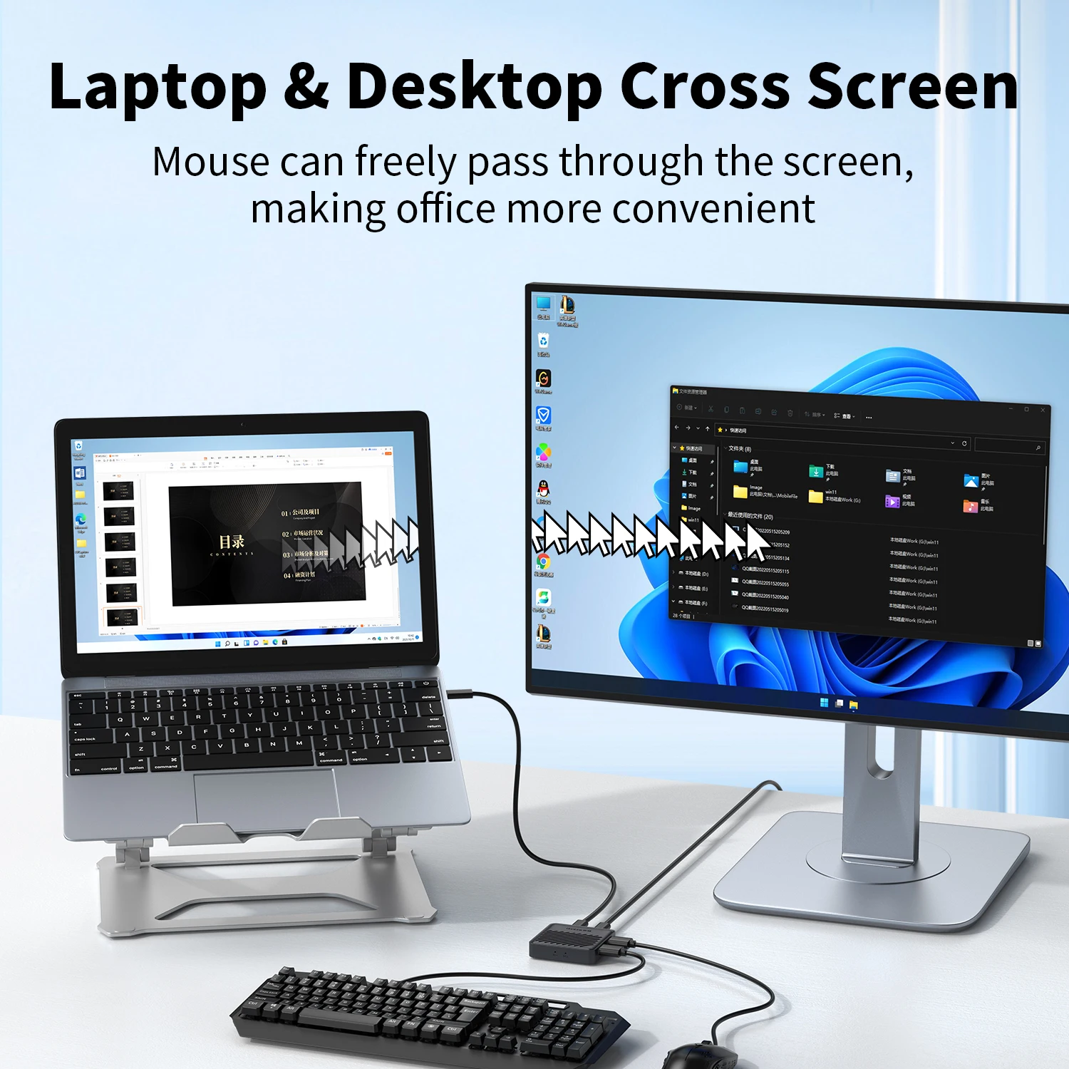 Перекрестный экран мыши Unnlink без рамок, два компьютера доступают одну мышь и клавиатуру. USB-переключатель KVM для Windows, Mac, Linux.