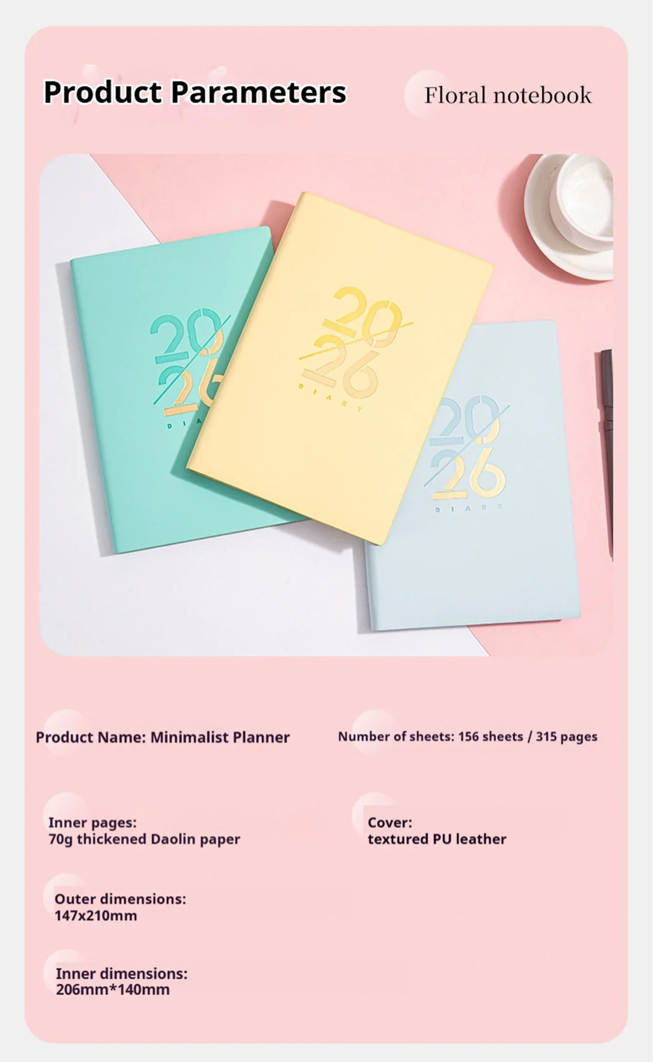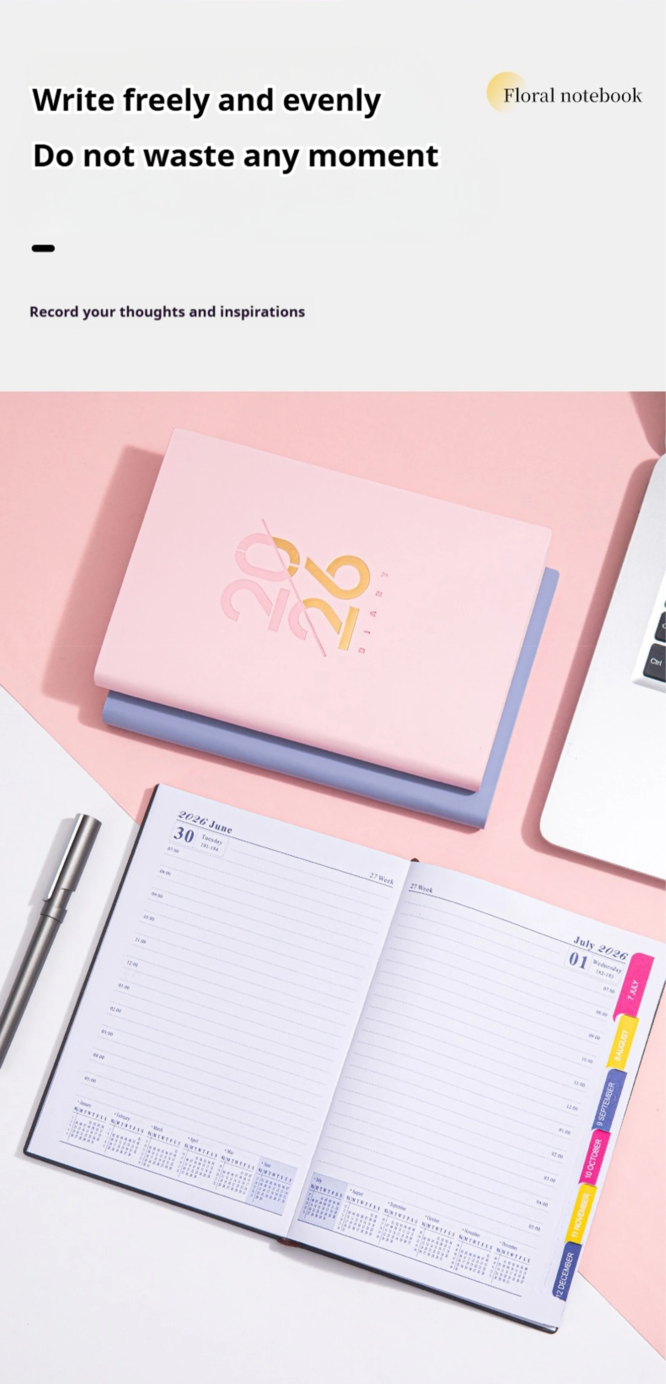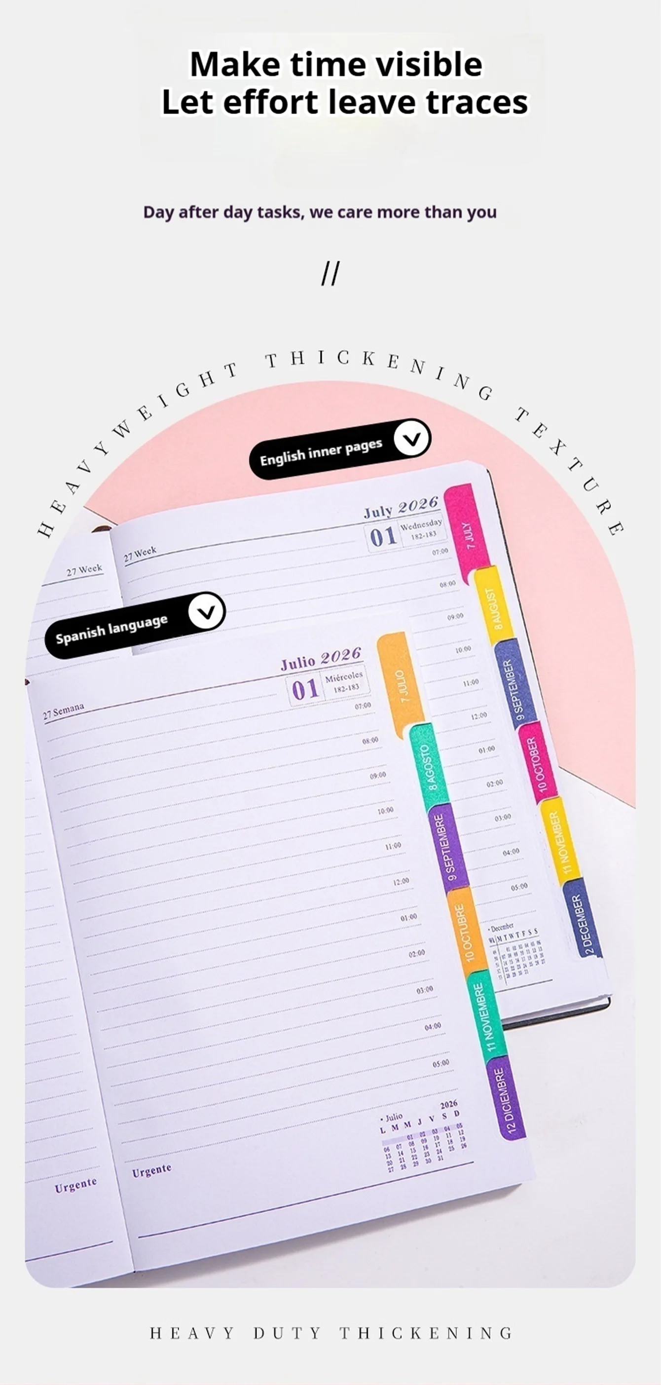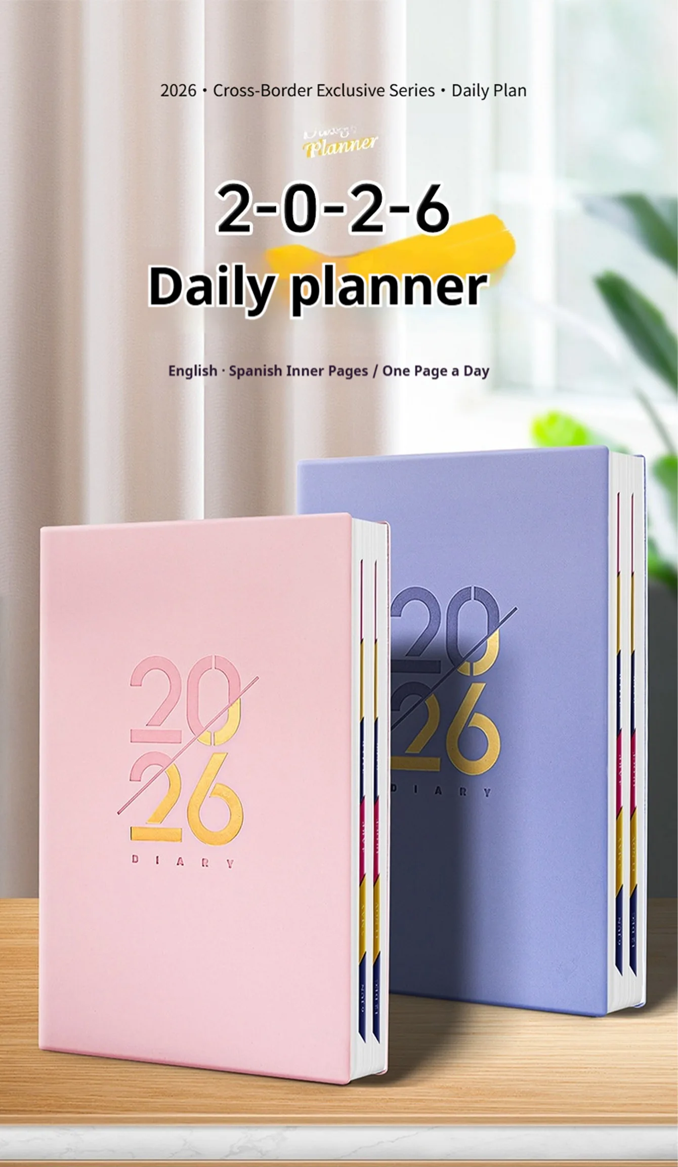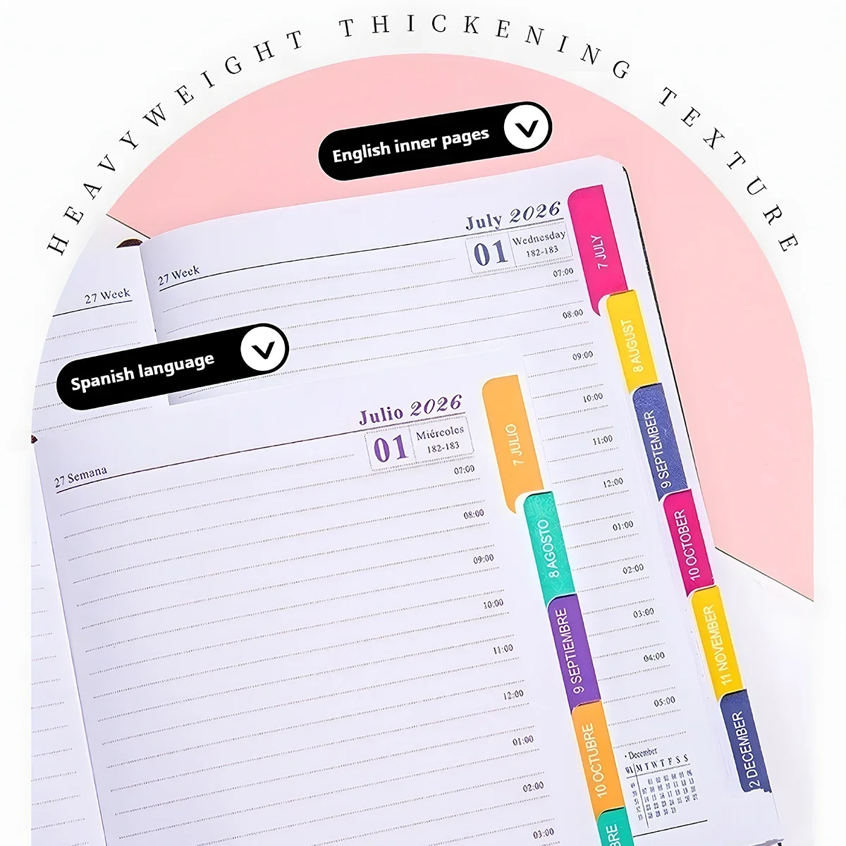 Планировщик Jan-Dec 2026, блокнот на испанском/английском языке, A5, чехол из искусственной кожи, школьный план повестки дня, еженедельный ежемесячный органайзер для дневника
