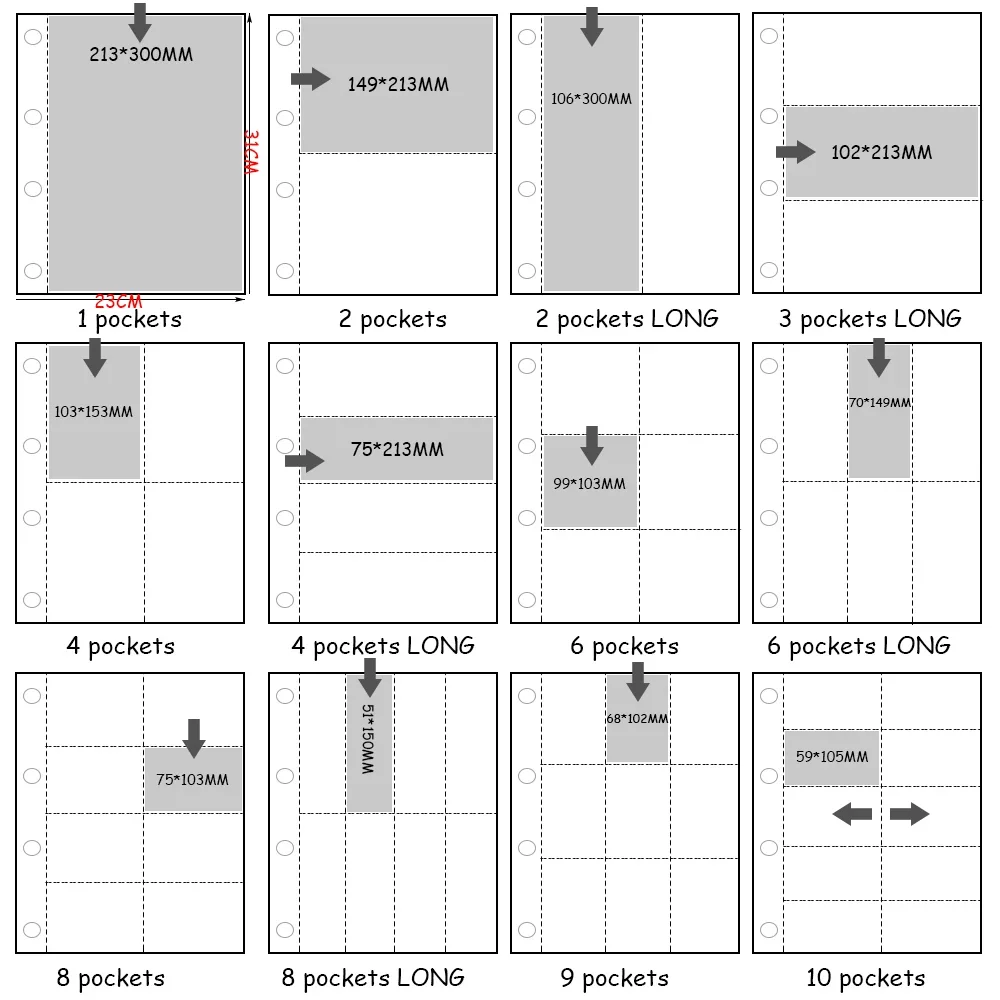Выбирайте из множества типов слотов-1 слот, 2 слота, вертикальные 2 слота, 3 слота, 4 слота, вертикальные 4 слота, 6 слотов, вертикальные 6 слотов, 8 слотов, вертикальные 8 слотов, 9 слотов и 10 слотов-идеально организовать вашу коллекцию карточек, фотографий, Коллекционные карты, спортивные карточки, банковские карты, билеты, квитанции, визитные карточки, документы и материалы для скрапбукинга.