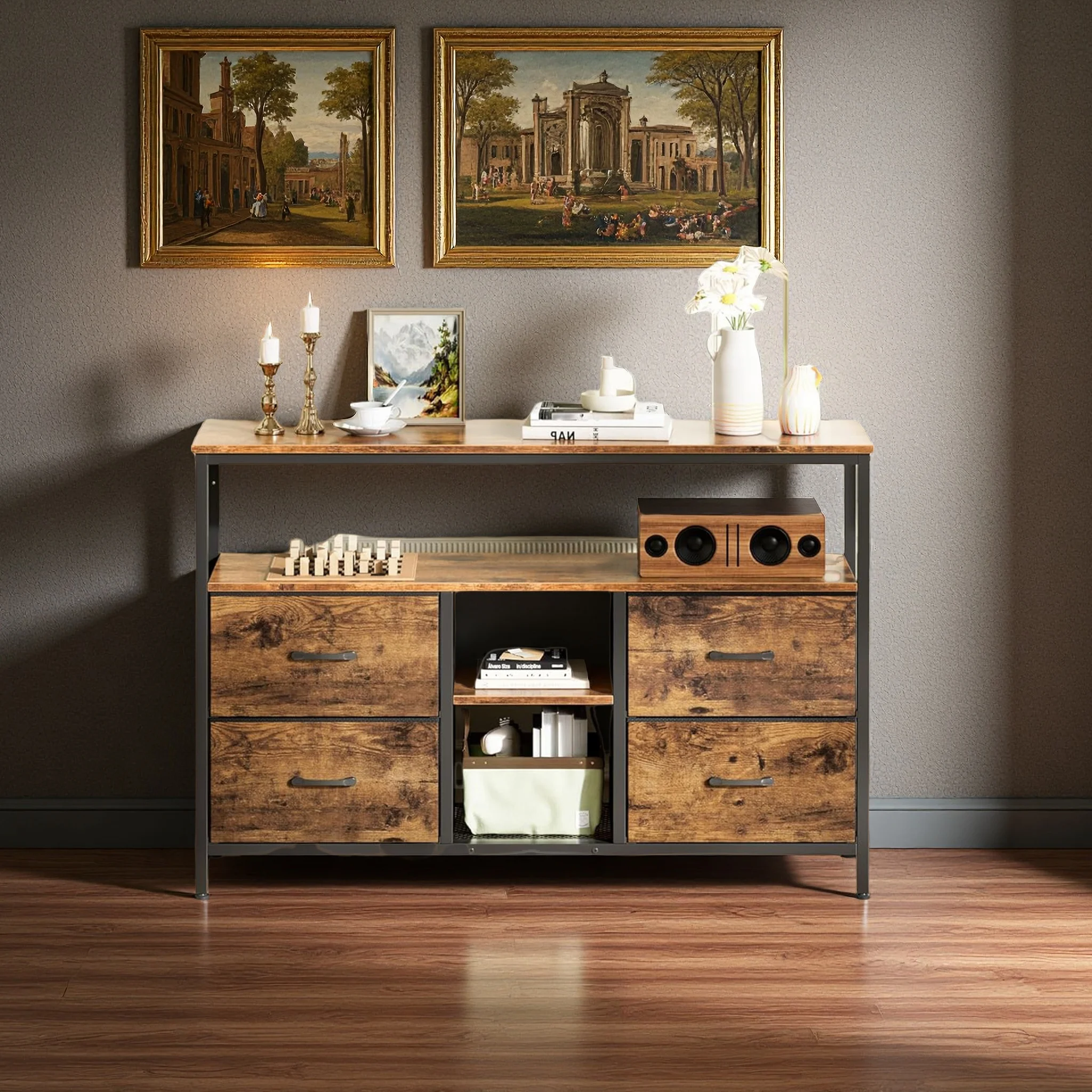 Подставка под телевизор Rosahqnda с 4 ящиками, тумба под телевизор, регулируемые полки, стол под телевизор, шкаф под телевизор, мебель для гостиной