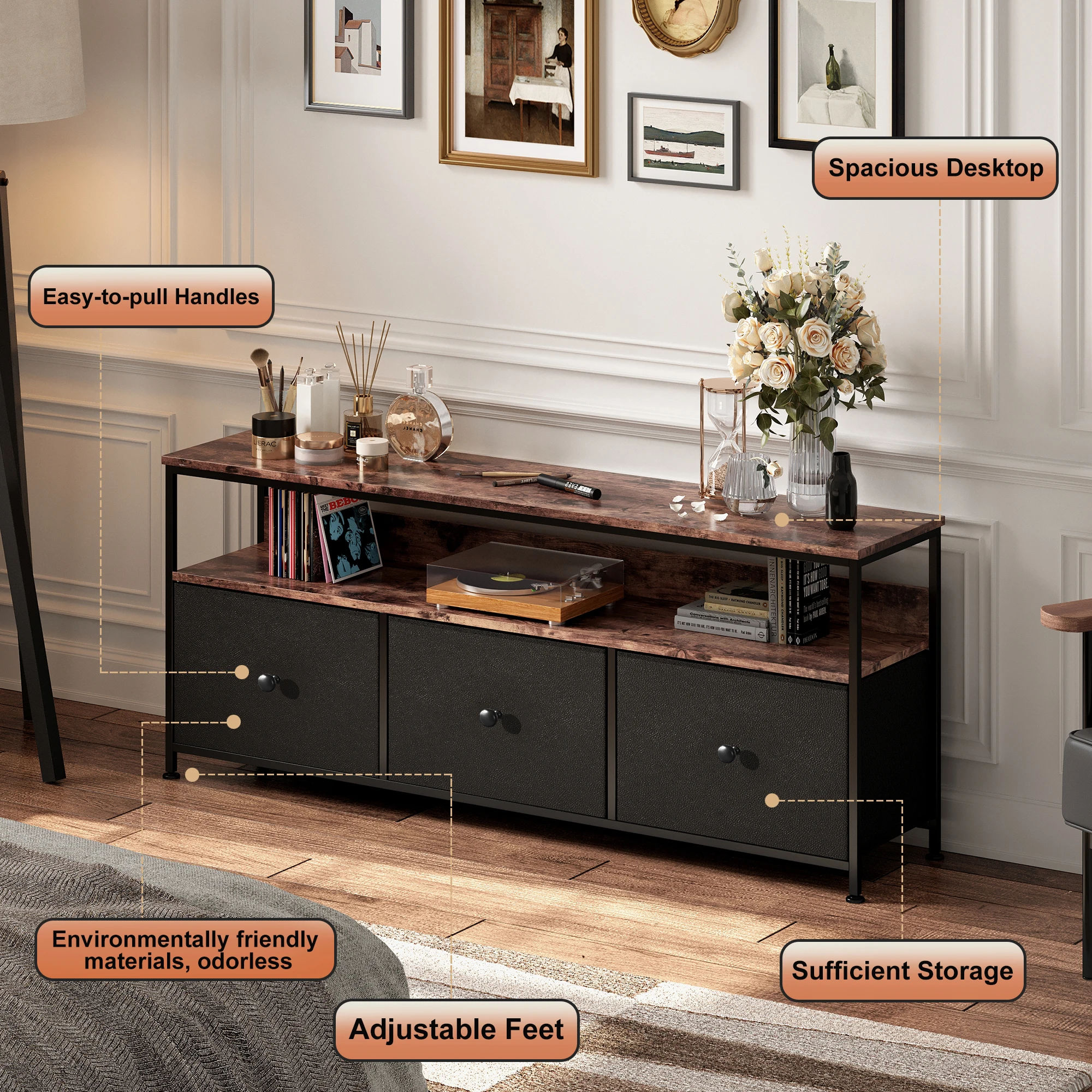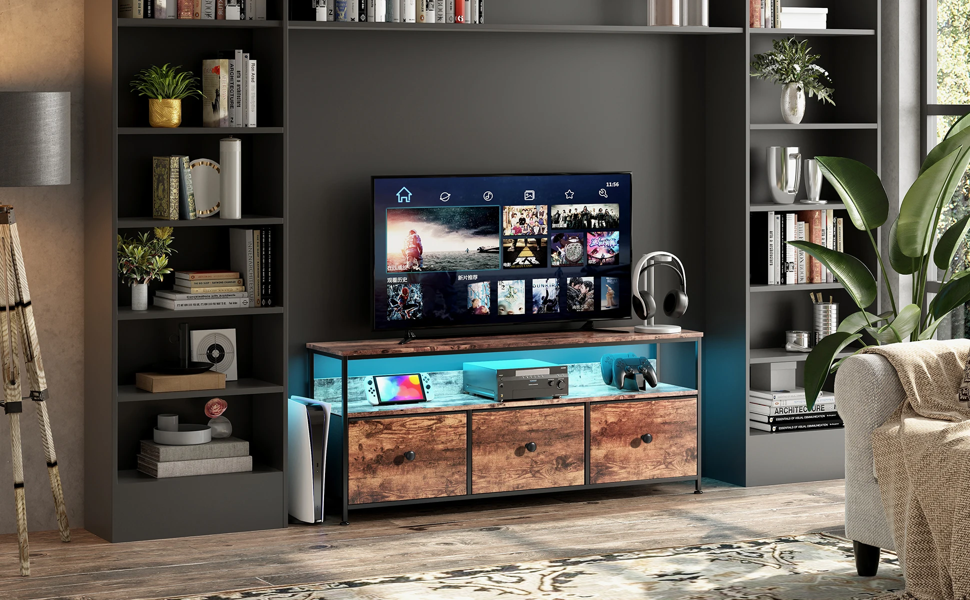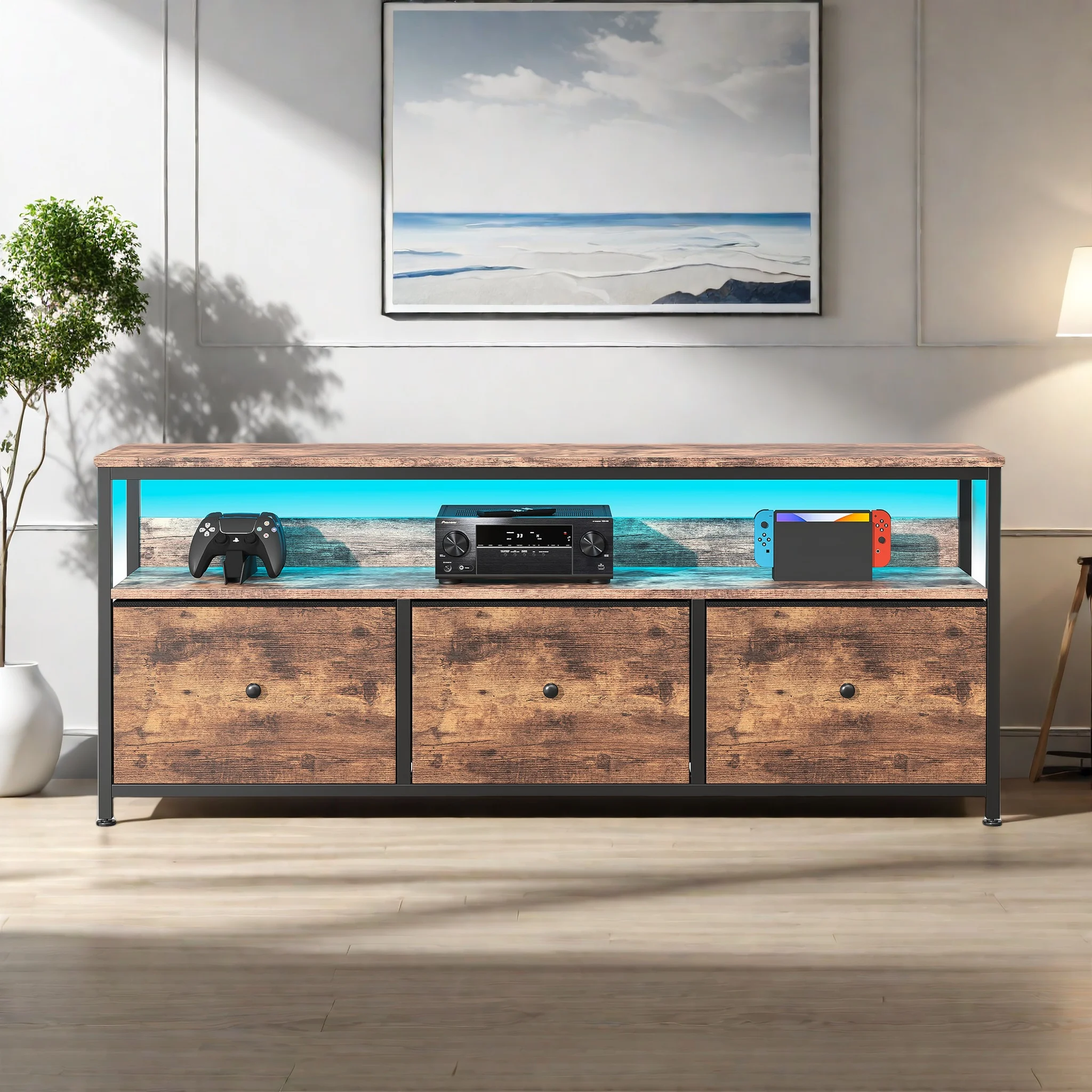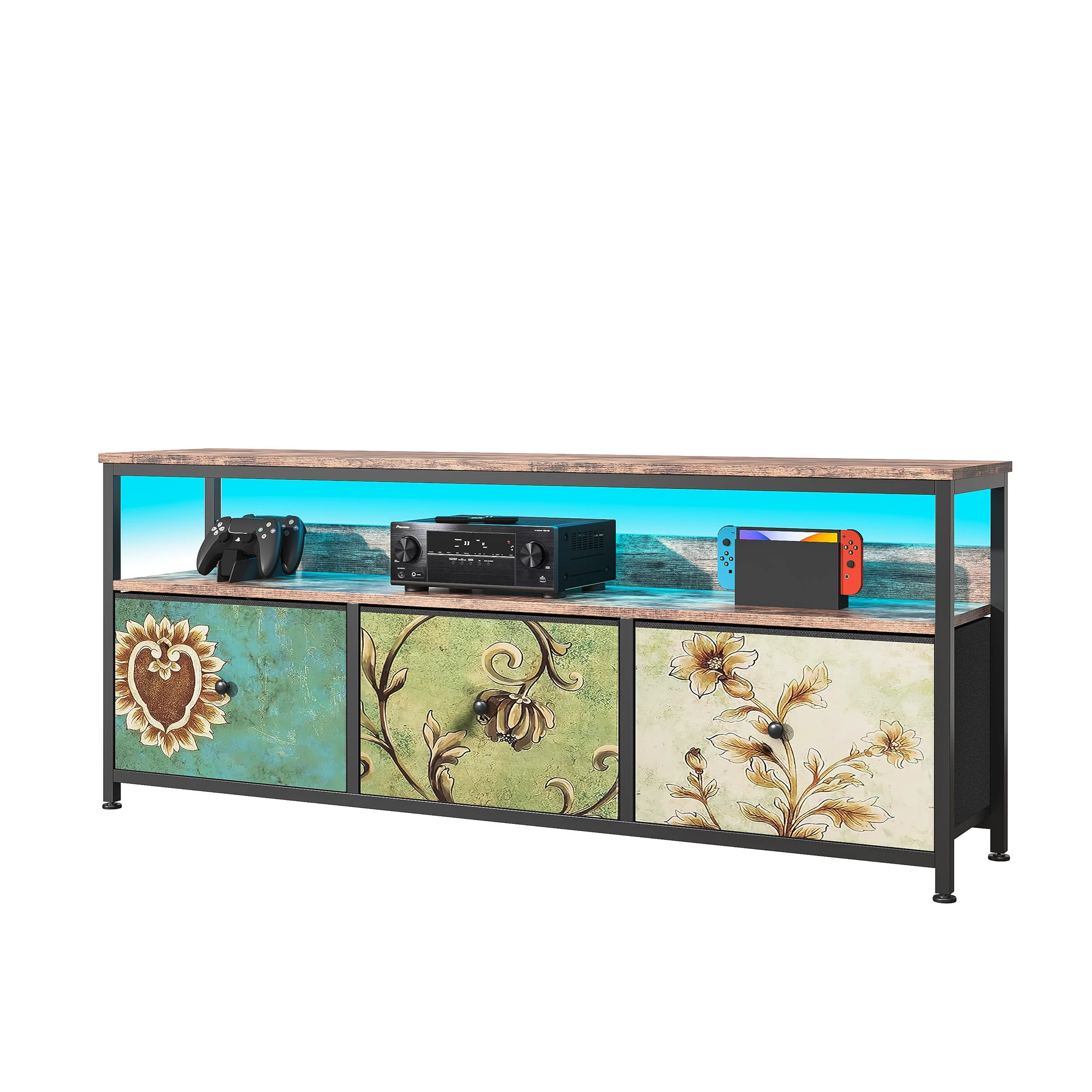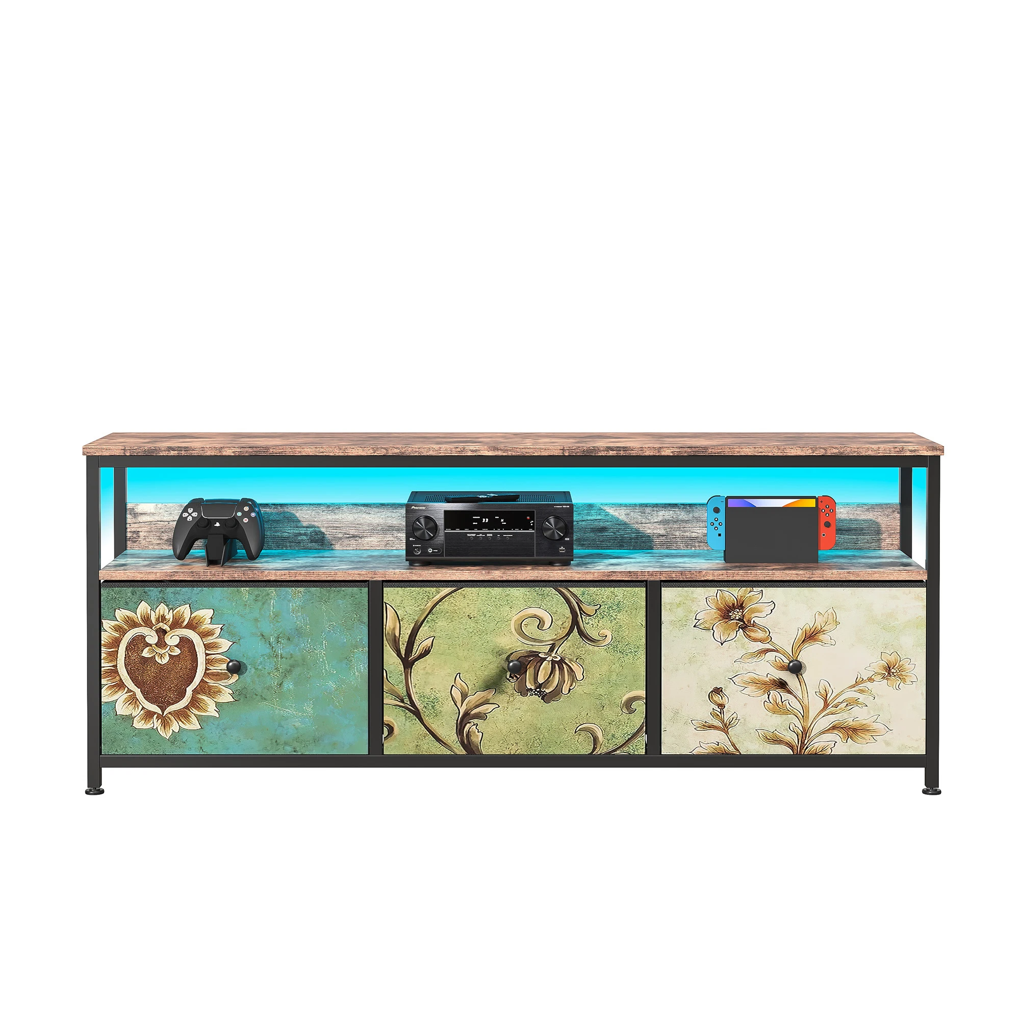 Подставка под телевизор Rosahqnda, винтажный шкаф для телевизора со светодиодами и 3 тканевыми ящиками, комод для гостиной, столовой, спальни, железный каркас