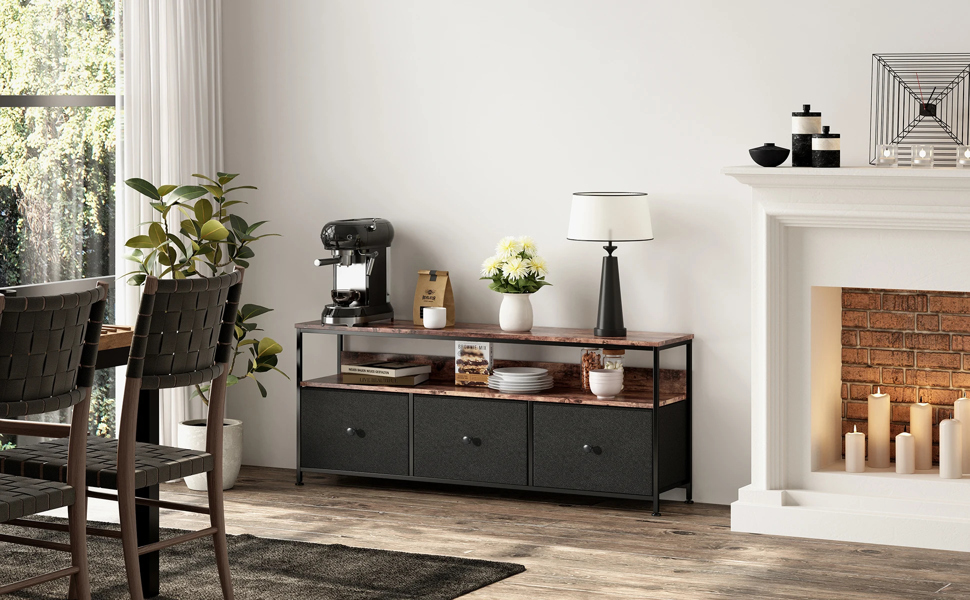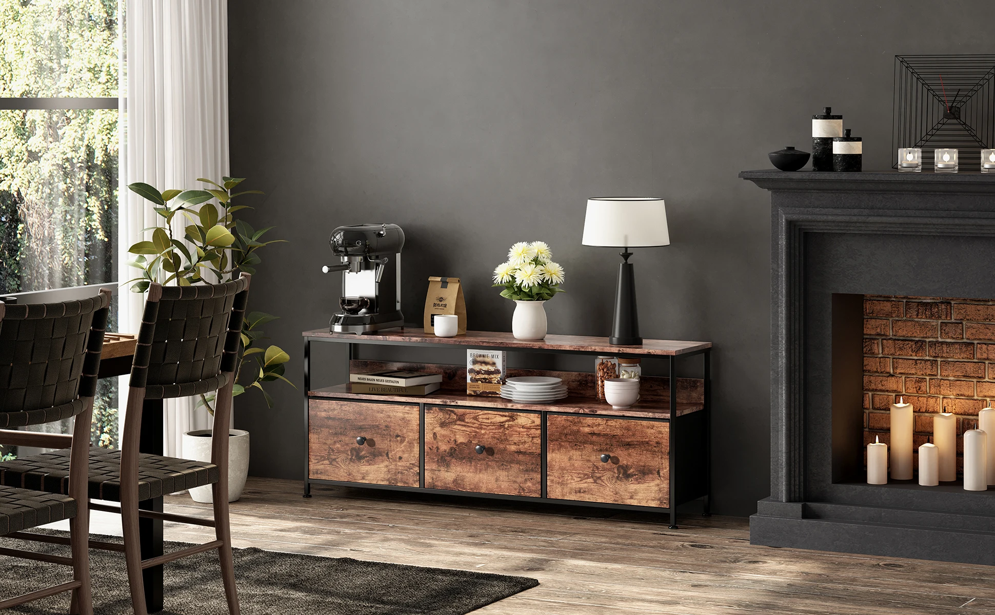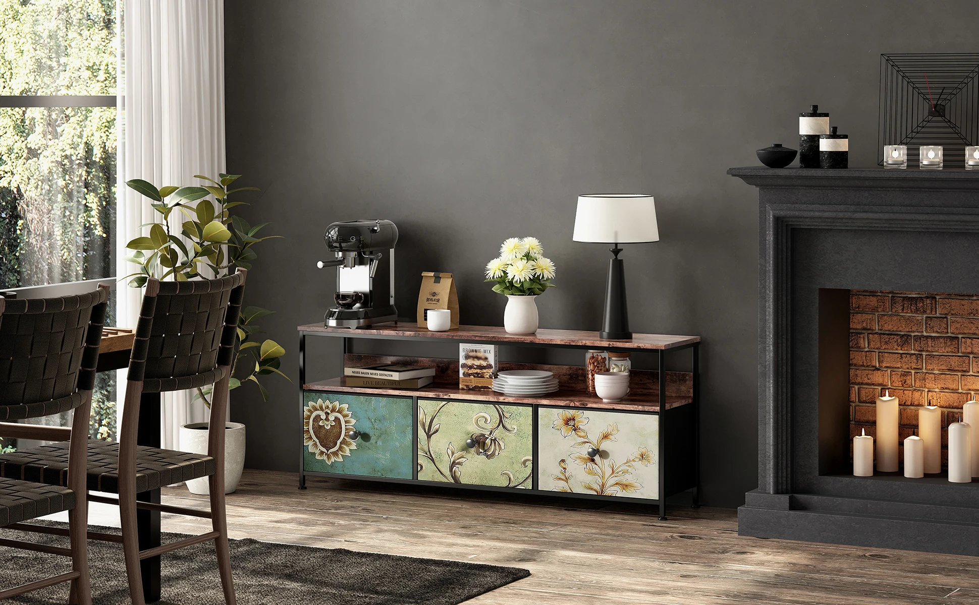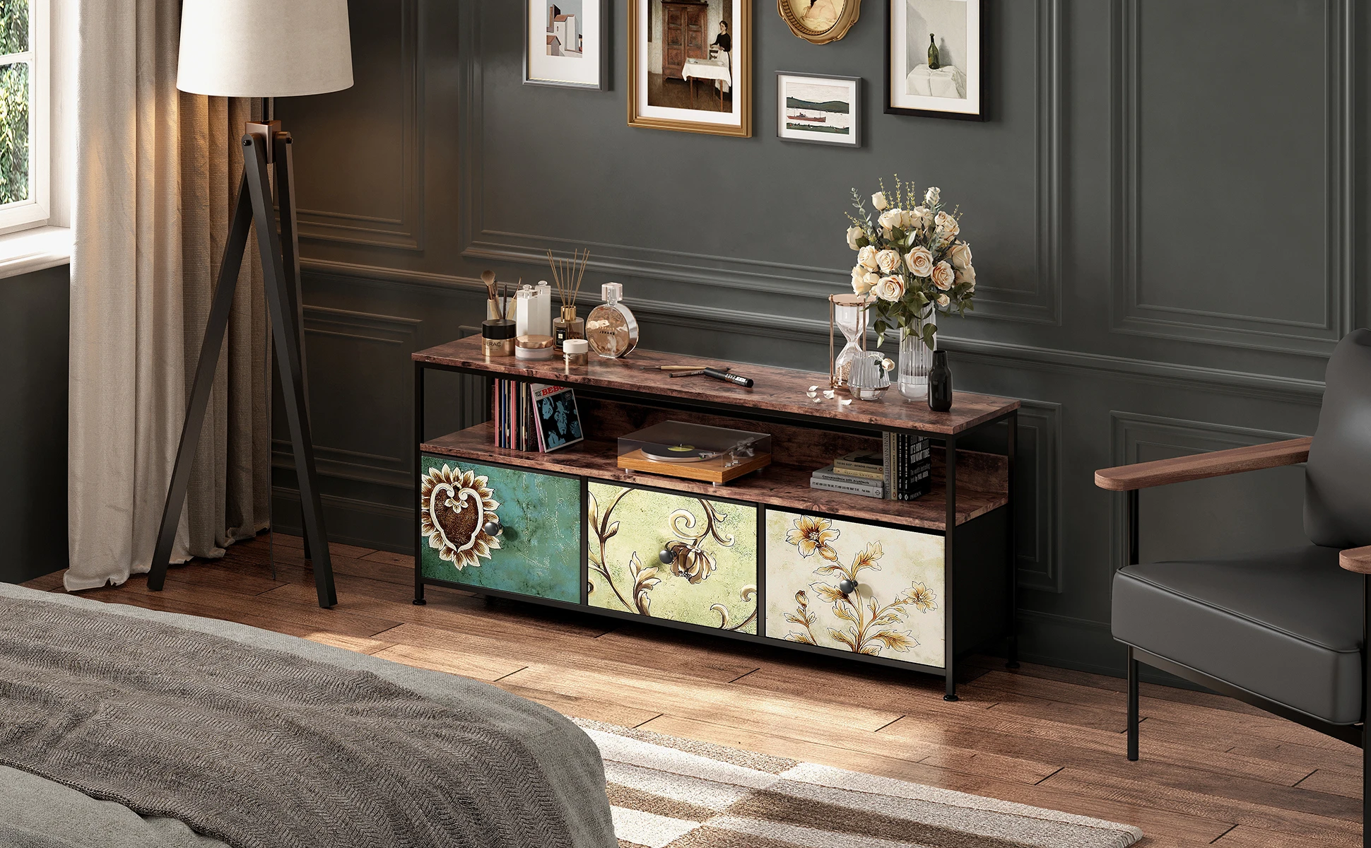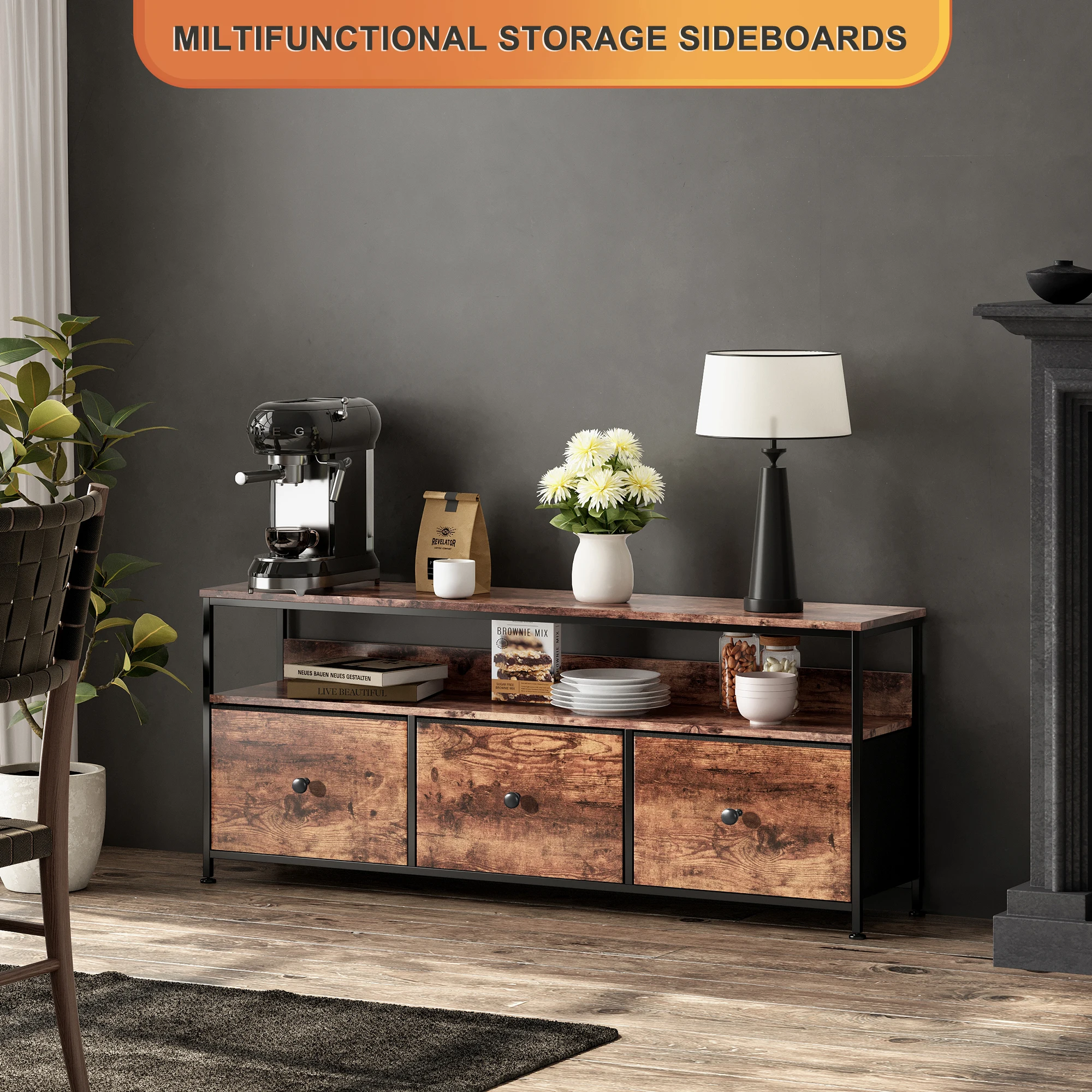 Подставка под телевизор Rosahqnda, винтажный шкаф для телевизора со светодиодами и 3 тканевыми ящиками, комод для гостиной, столовой, спальни, железный каркас