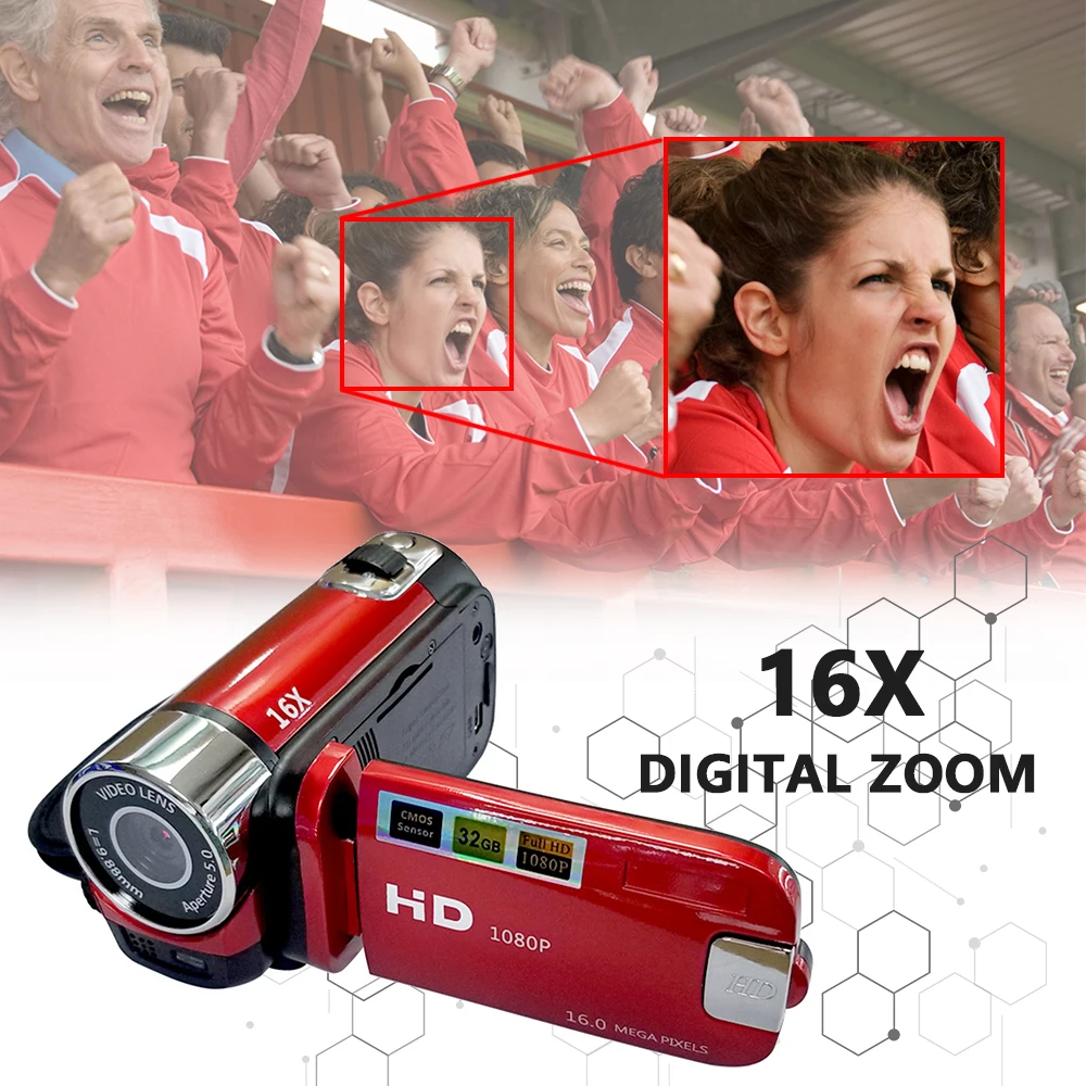 Портативная цифровая видеокамера высокого разрешения 1080P, DV-видеокамера, 16 МП, 2,7-дюймовый ЖК-экран, 16-кратный цифровой зум, встроенный аккумулятор