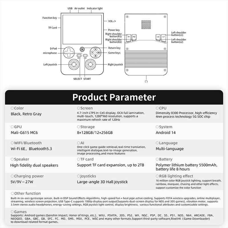Портативная игровая консоль ANBERNIC RG477V в стиле ретро, 4,7-дюймовый LTPS, 64-битный игровой плеер, размер 8300, онлайн-многоплеер, потоковая передача RG 477 В
