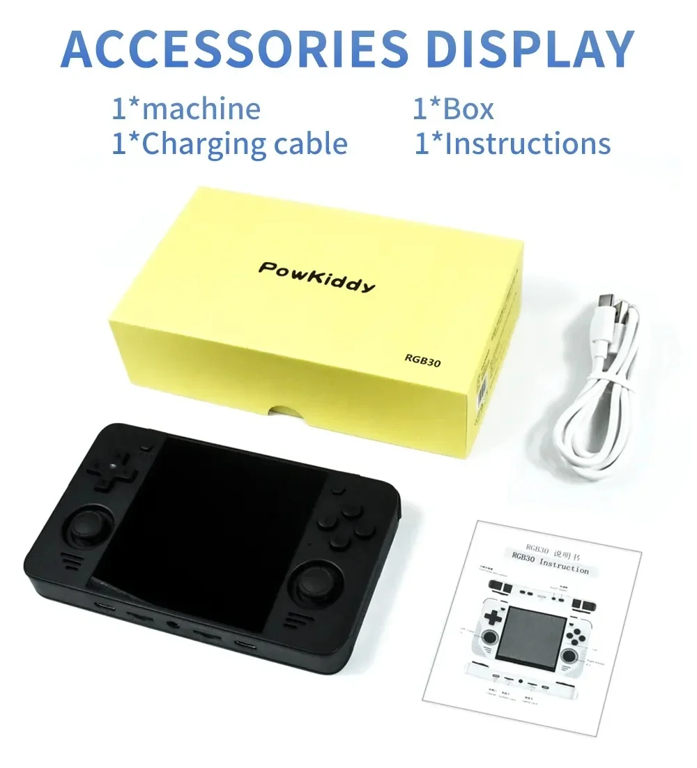 Портативная игровая консоль POWKIDDY RGB30, 4 дюйма, Ips экран, встроенный Wi-Fi, RK3566, ретро консоль с открытым исходным кодом, 450 игр PSP