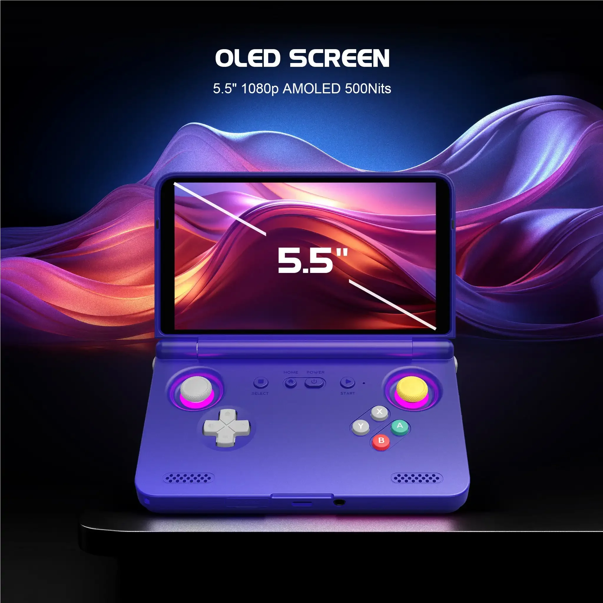 Портативная игровая консоль Retroid Pocket Flip 2 SD865/D1100 в стиле ретро, складная игровая консоль 1080p, 500 нит, с экраном 5,5 дюйма, 5000 мАч