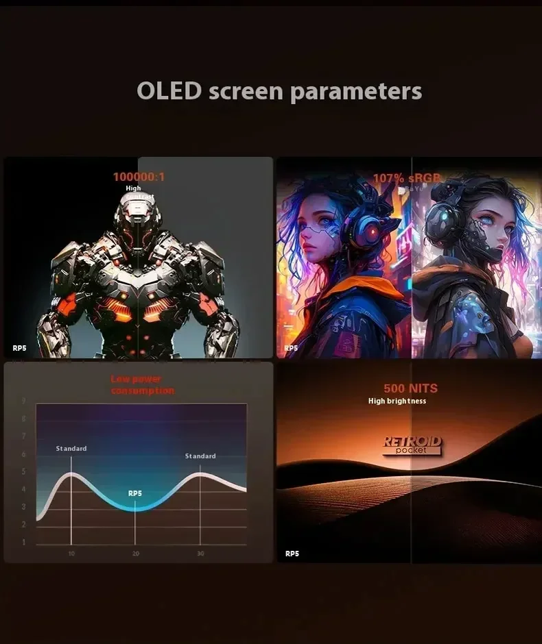 Портативные игровые плееры AMPOWN Retroid Pocket 5 RP5, 5,5-дюймовый AMOLED-экран 1080P, Android 13, портативный ретро-плеер для видеоигр SD865