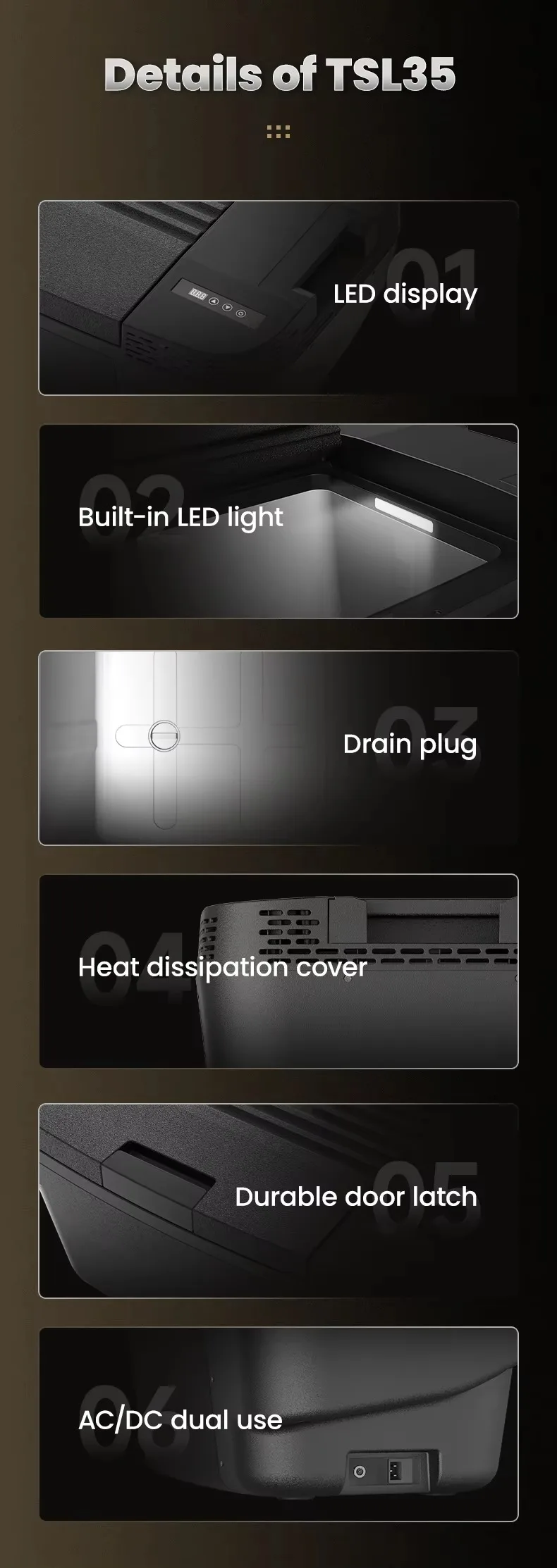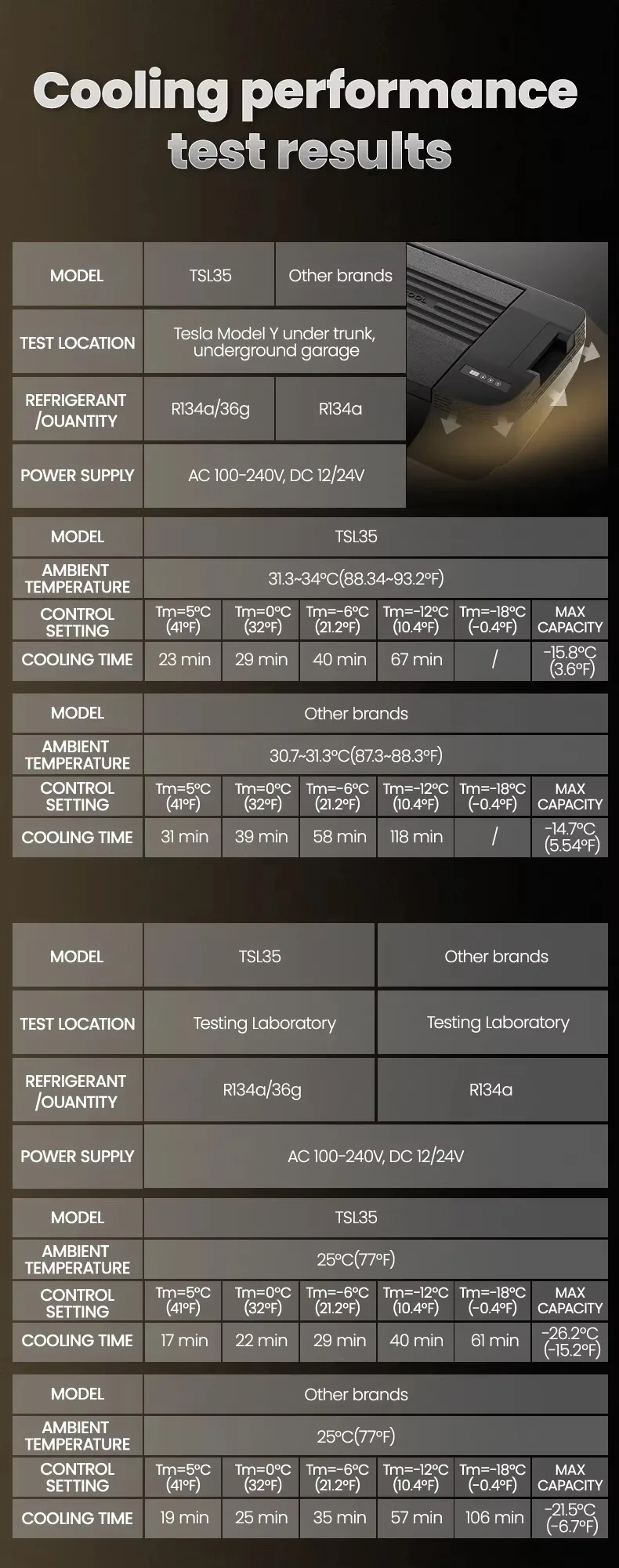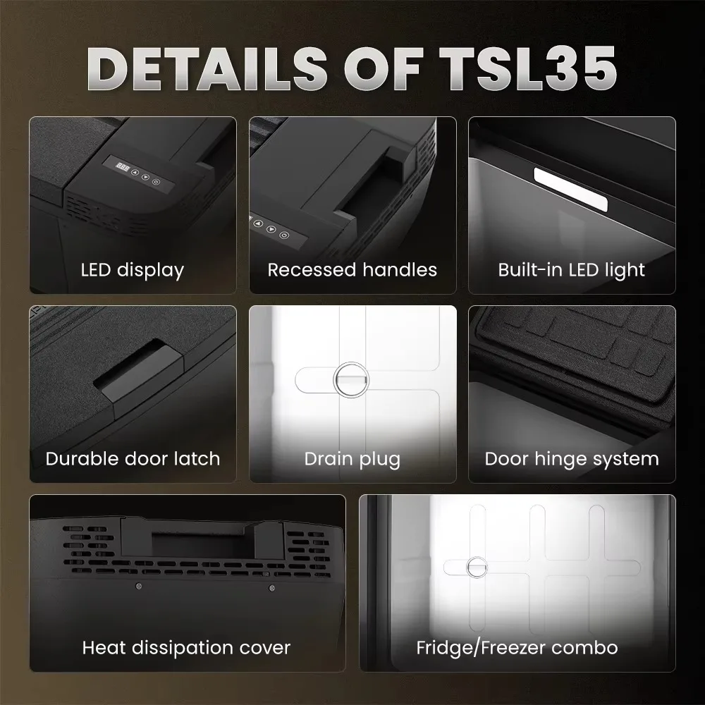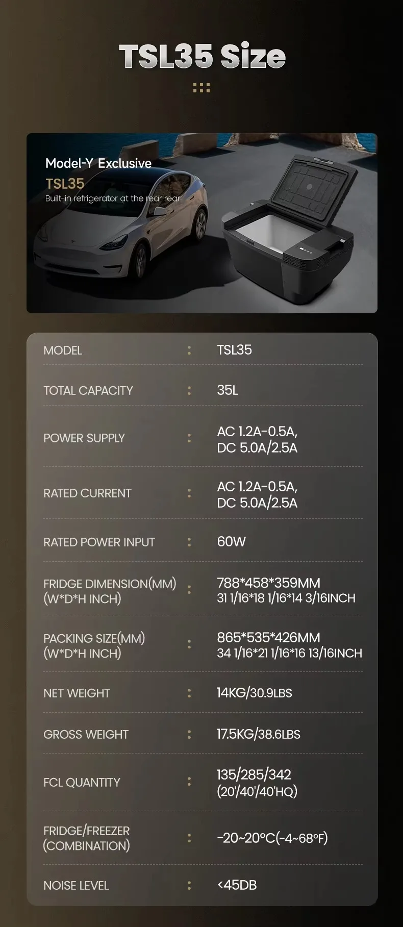 Портативный автомобильный холодильник TSL35 для Tesla Y, автомобильная морозильная камера 37qt (35 л), холодильник с быстрым охлаждением-4 ℉ ~68 ℉ , 12/24 В постоянного тока для улицы, кемпинга