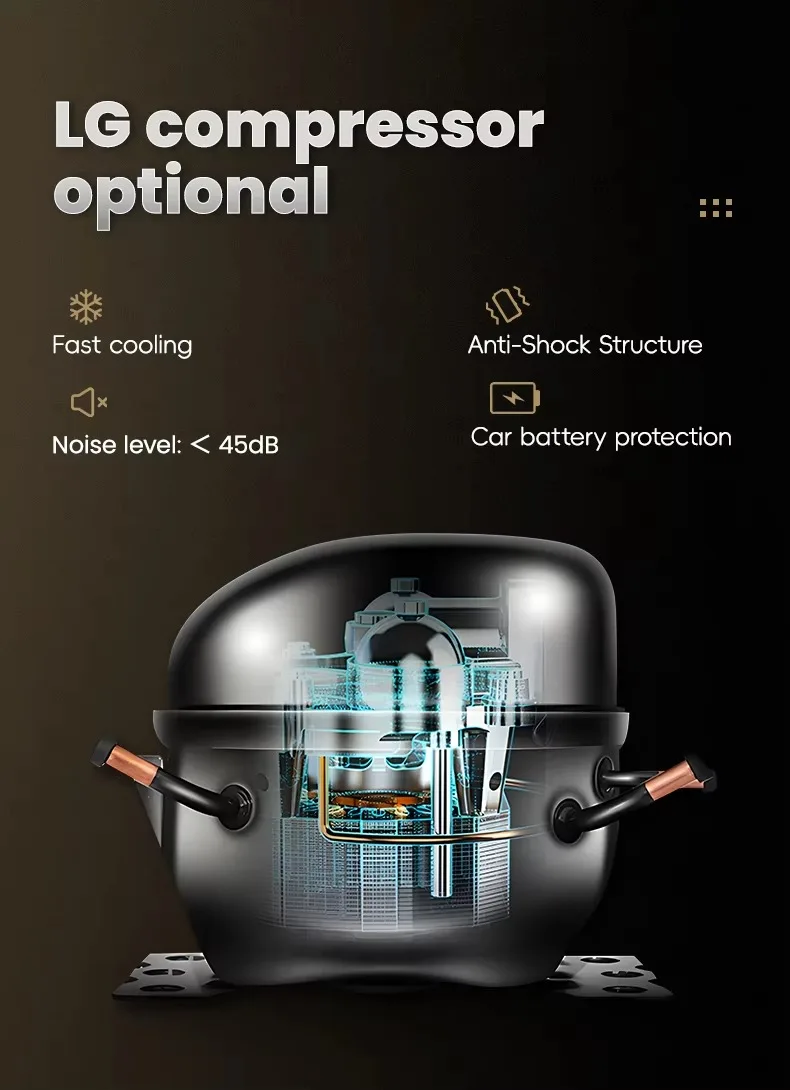 Прочная конструкция: этот автомобильный холодильник имеет прочную внешнюю поверхность и изолированные стены и выдерживает суровые условия путешествия.