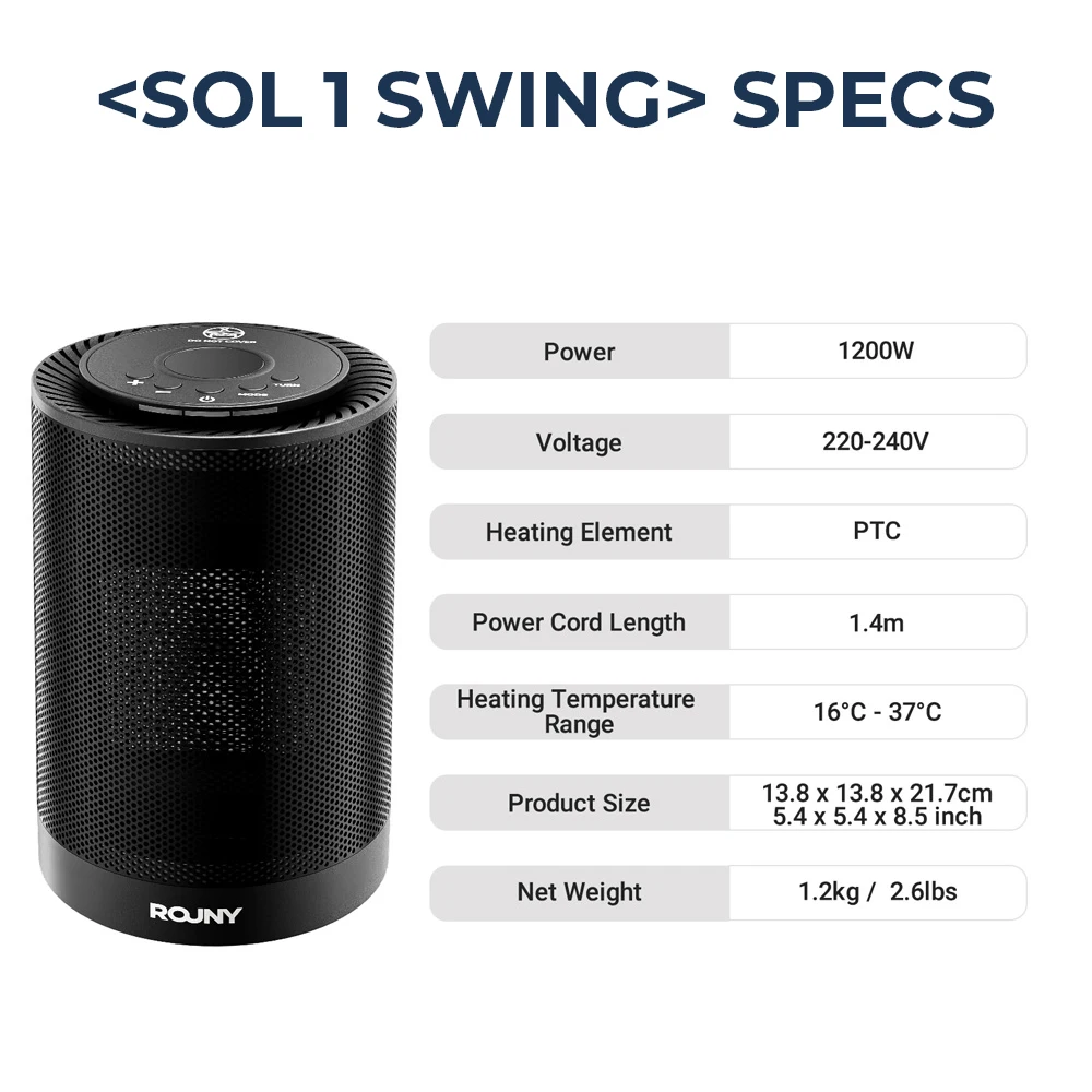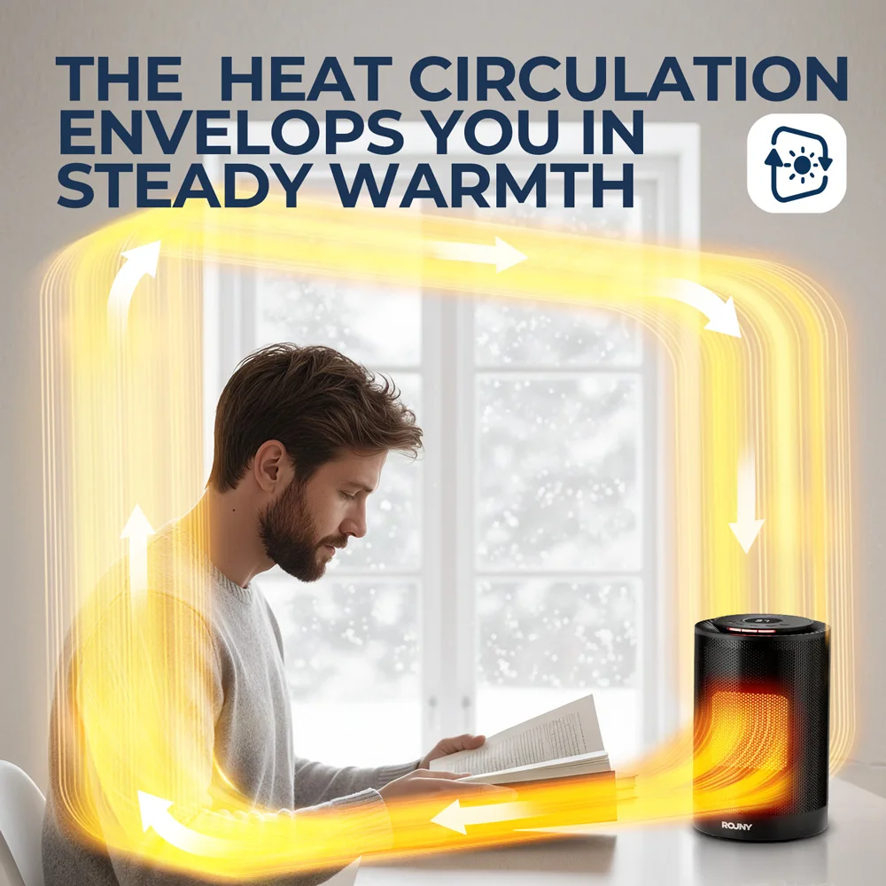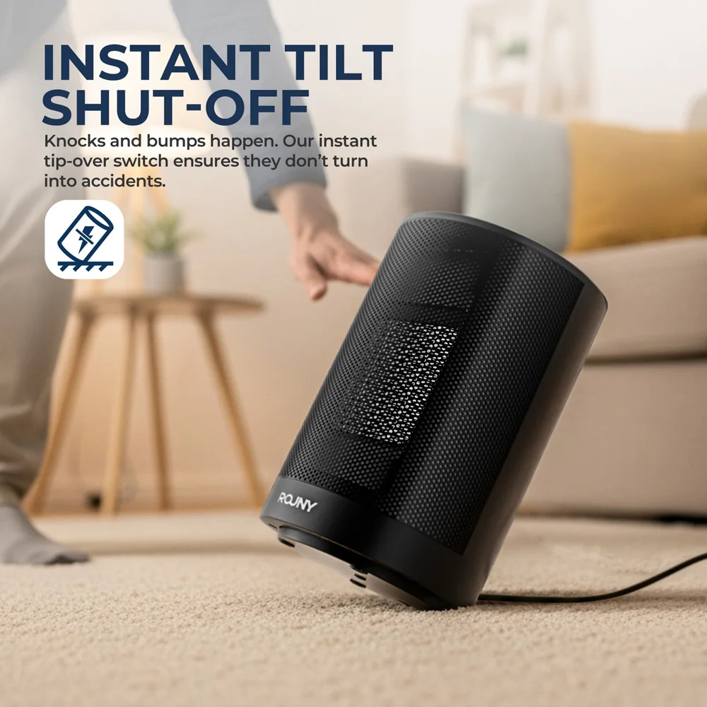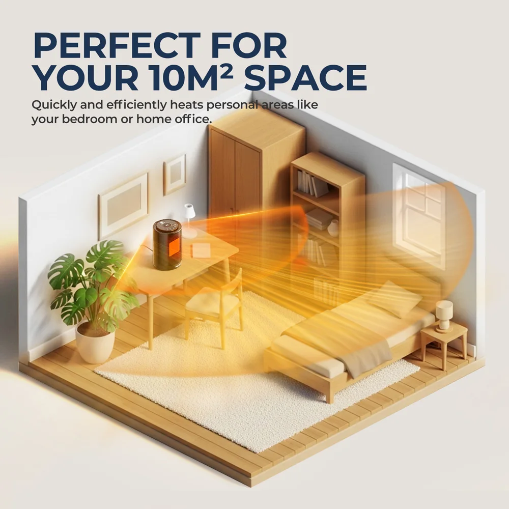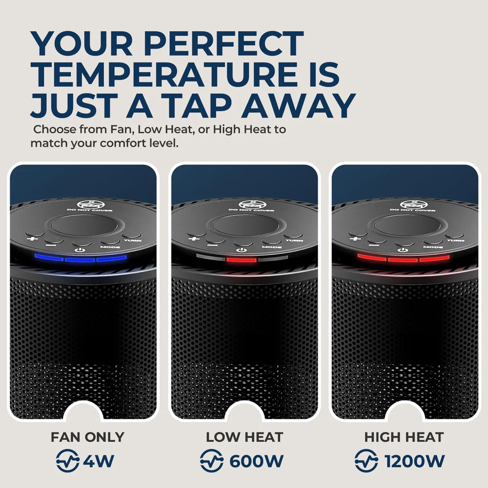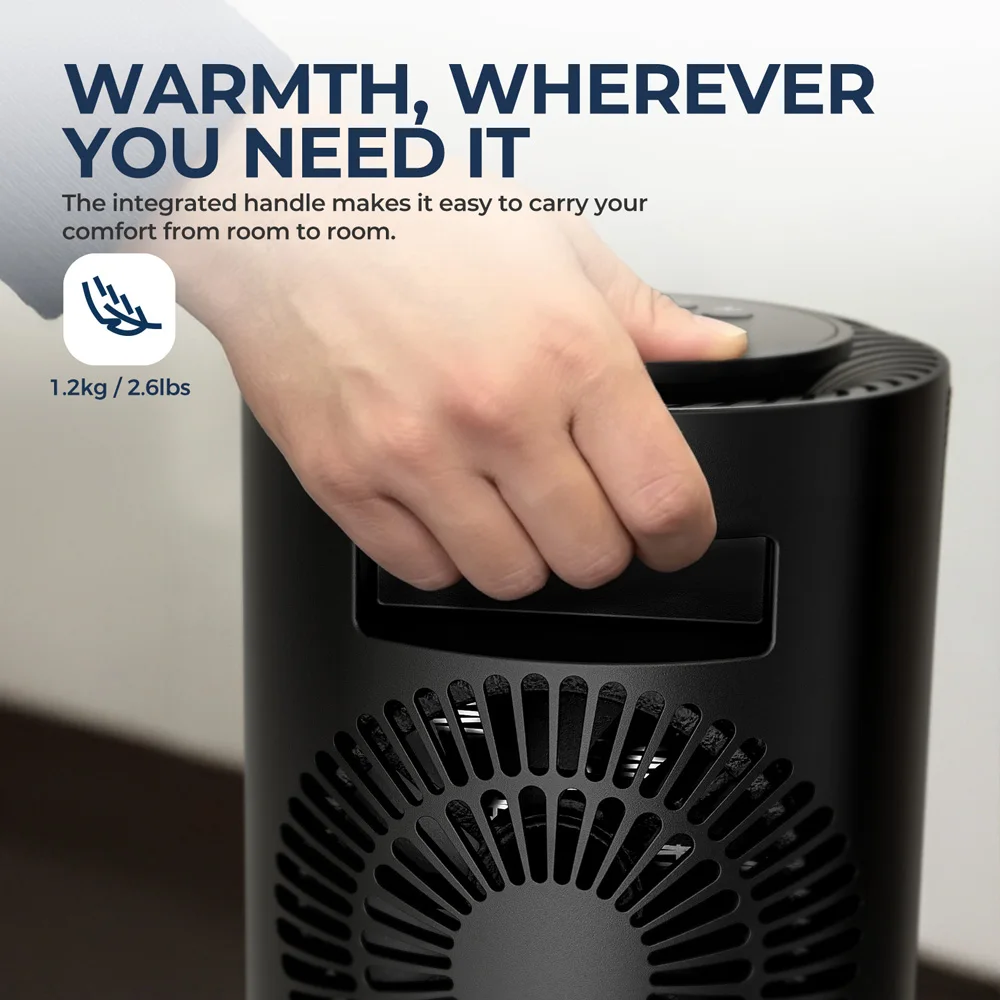 Портативный керамический обогреватель PTC мощностью 1200 Вт, 80 ° Осциллирующий настольный тепловентилятор, быстрый тихий обогрев 1s для спальни, офиса, использования в помещении