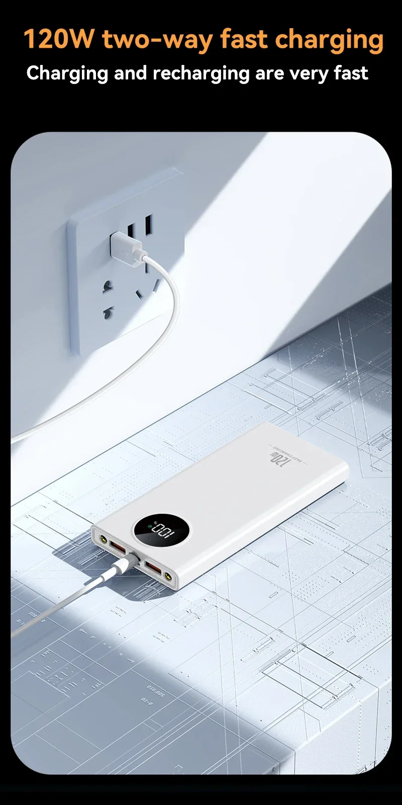 Power Bank 120 Вт, супер быстрая зарядка, сверхбольшая емкость 80000 мАч для мобильного питания, внешний аккумулятор для Iphone Xiaomi Samsung