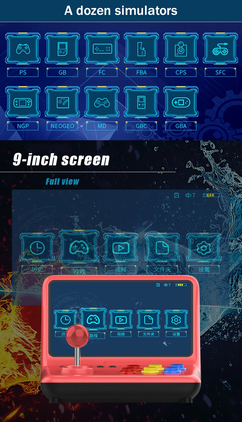 POWKIDDY A12 32G/64GB 9-дюймовый джойстик аркадный A7 архитектура четырехъядерный процессор симулятор видеоигровая консоль новая игра детский подарок