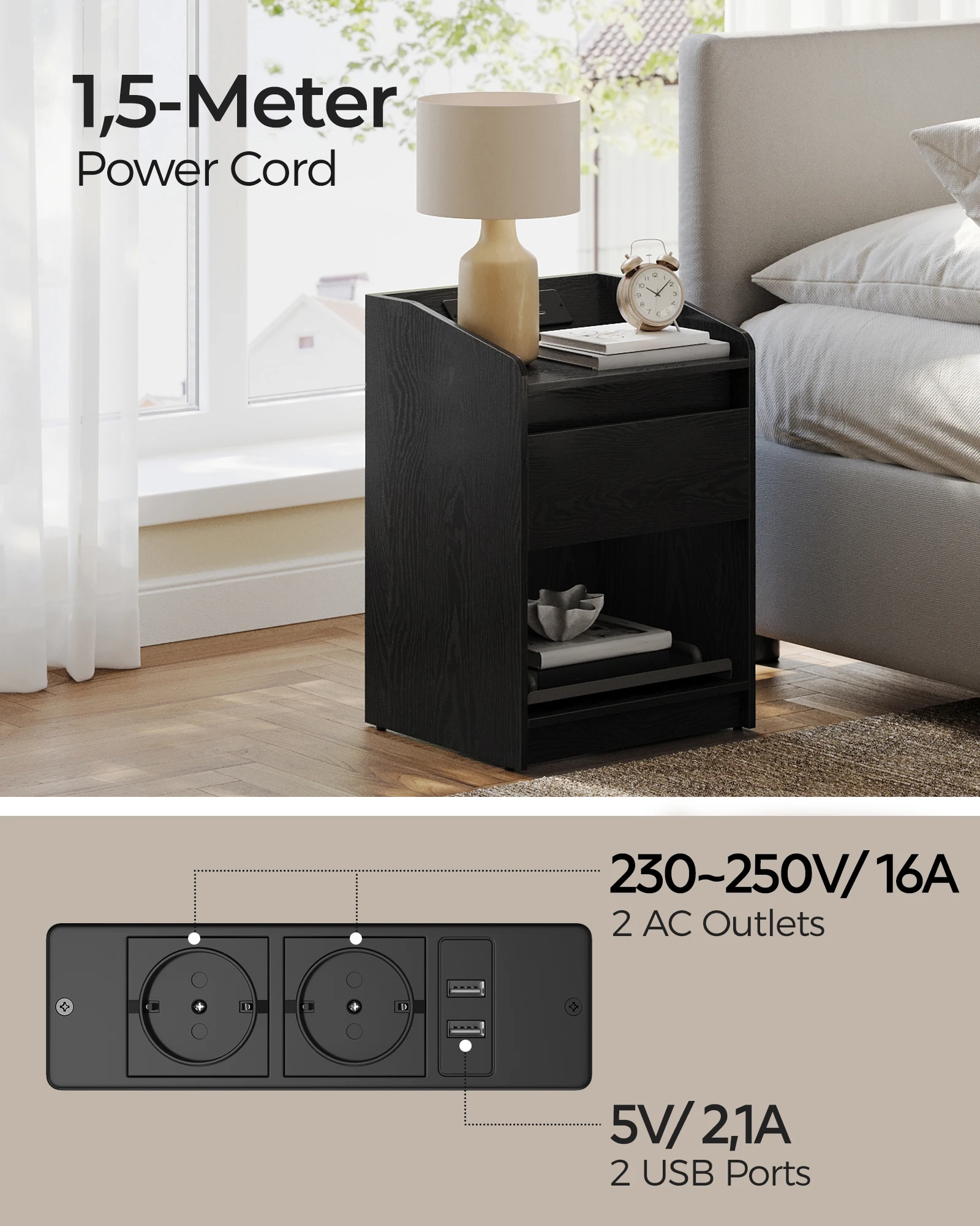 [Легко подключайте устройство]: Угловая зарядная панель является выдающейся особенностью этой прикроватной тумбочки, обеспечивающей легкий доступ для подключения и отключения ваших устройств.Благодаря кабелю длиной 1,5 метра в комплекте вы можете разместить эту прикроватную тумбочку дальше от розетки и наслаждаться ее возможностью зарядки.