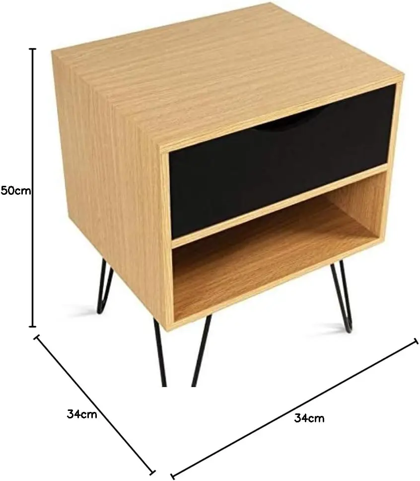 Прикроватная тумбочка, ночной столик с 1 ящиком, 40*34*50 см, приставной столик, индустриальный стиль, спальня, легко монтируется