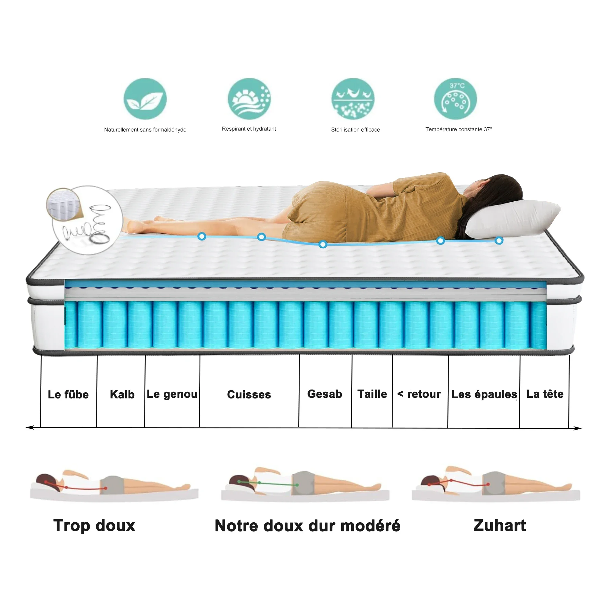 Трехсторонний независимый пружинный матрас с мешком 140*190*25 см, белый + серый бордюр (контрактные примечания: матрас должен быть маркирован этикеткой со подсолнухом + матрасом и положить открытый нож)