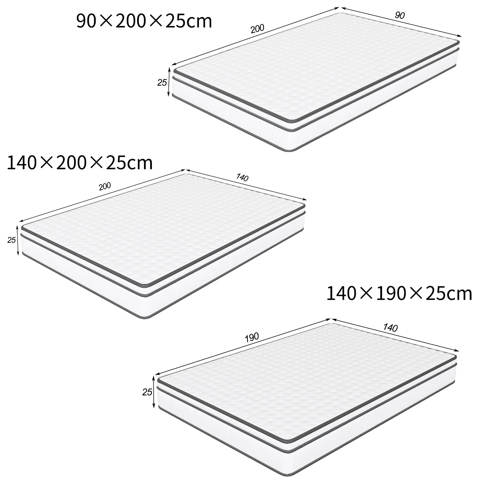 Пружинный матрас Comanlai 90 × 200 × 25 см/140 × 190 × 25 см/140 × 200 × 25 см Белый + серый край, индивидуальный карман, мебель для спальни