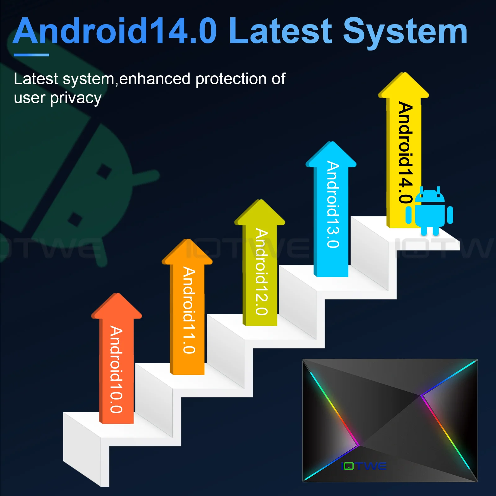 Это устройство Android TV Box оснащено идеальной операционной системой Android 14.0, которая имеет отличную совместимость с программным обеспечением, играми и приложениями.Кроме того, он обеспечивает модернизированный пользовательский интерфейс и первоклассный пользовательский опыт.