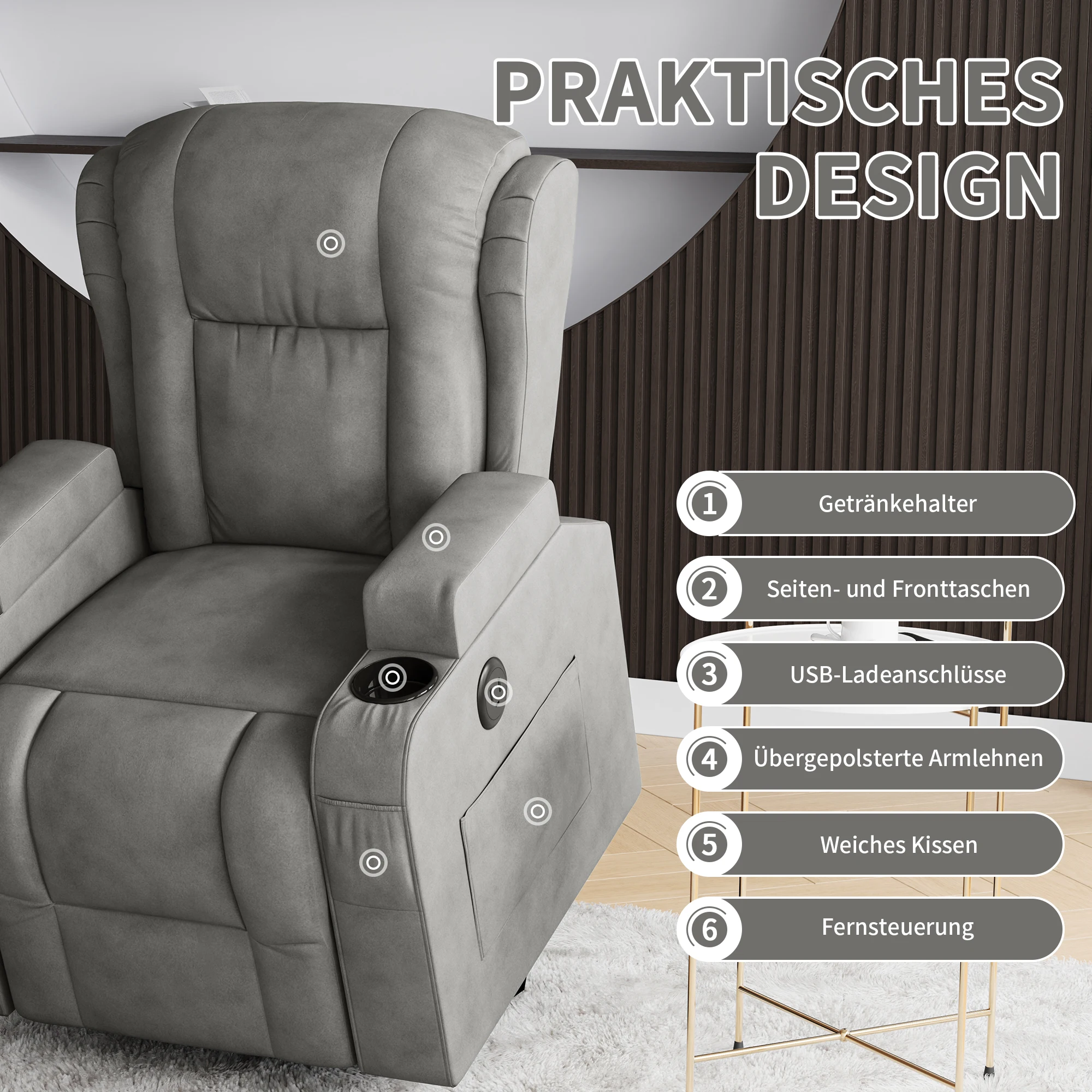 Обновление: массажное кресло с функцией обогрева оснащено защитной подушкой, которая делает кресло легко чистящимся и долговечным.Кроме того, в боковых карманах достаточно места для пультов дистанционного управления, книг и мобильных телефонов.Кроме того, четыре нескользящие ножки защищают пол от царапин и обеспечивают дополнительную устойчивость.Массажное кресло – оптимальная мебель для гостиной.