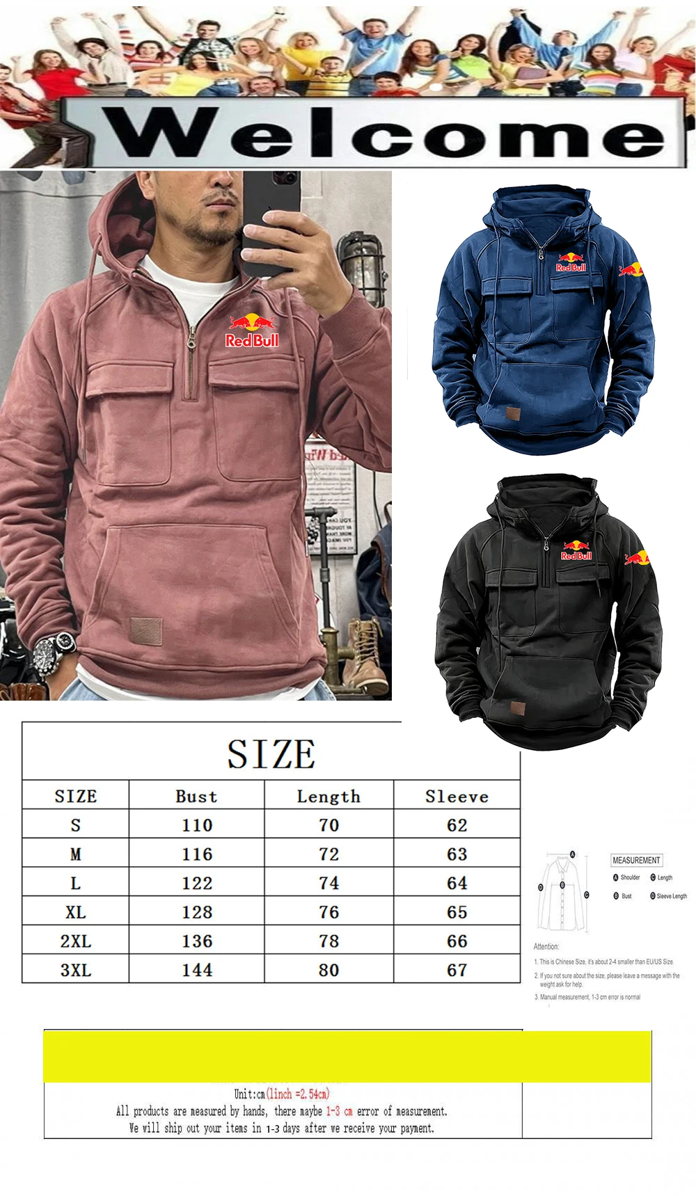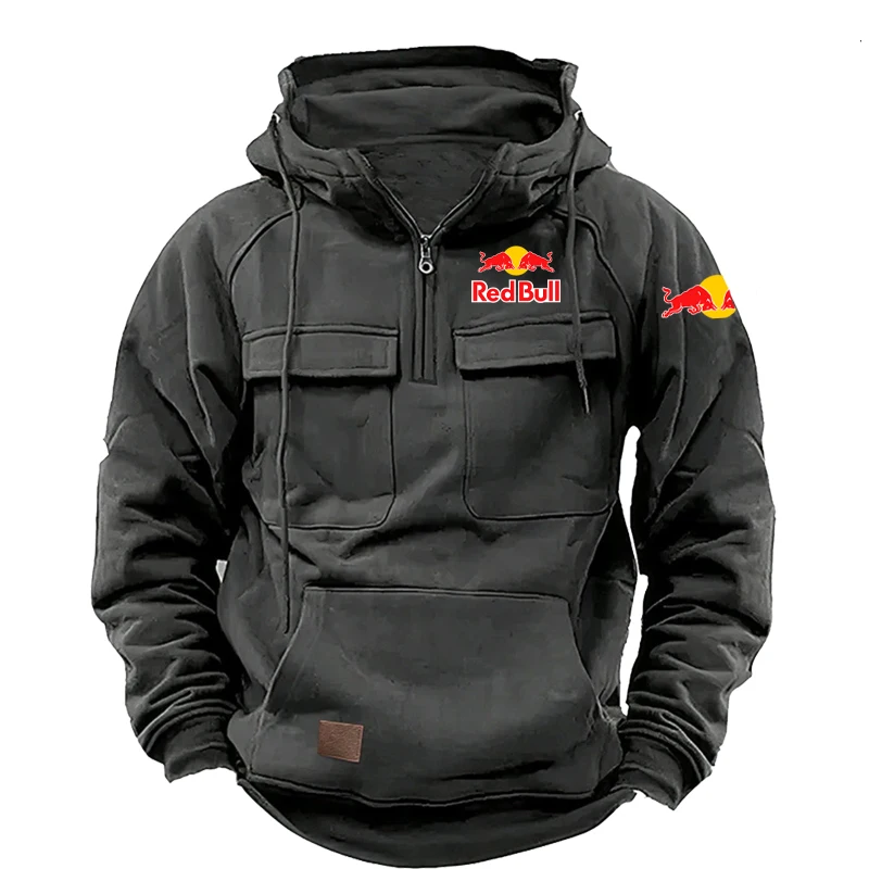 Red Bull Ретро Tough Guy Тяжелая толстовка Мужская толстовка с капюшоном на молнии на флисовой подкладке Утолщенный свободный мужской мотоциклетный пуловер Одежда