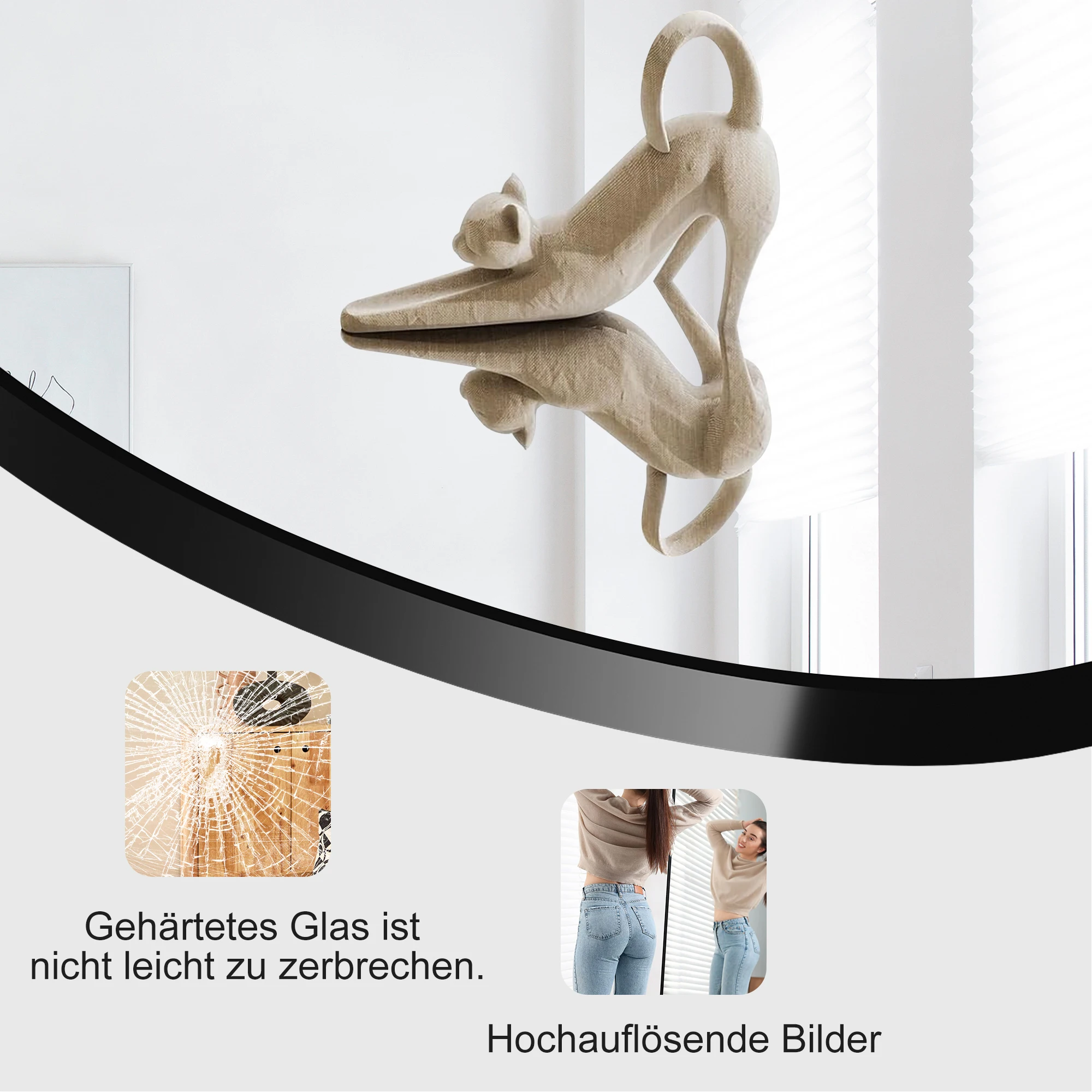 4. Большое стоячее зеркало: размером 164×54 см/173×63 см/177/77 см. Оно отвечает потребностям пространства разных размеров, зеркало во всю длину обеспечивает просторную поверхность отражения и способствует визуальному расширеннию пространства.Цвет черной/золотой рамки придает зеркалу в полный рост минималистичный вид, а изогнутый верх придает современный вид.