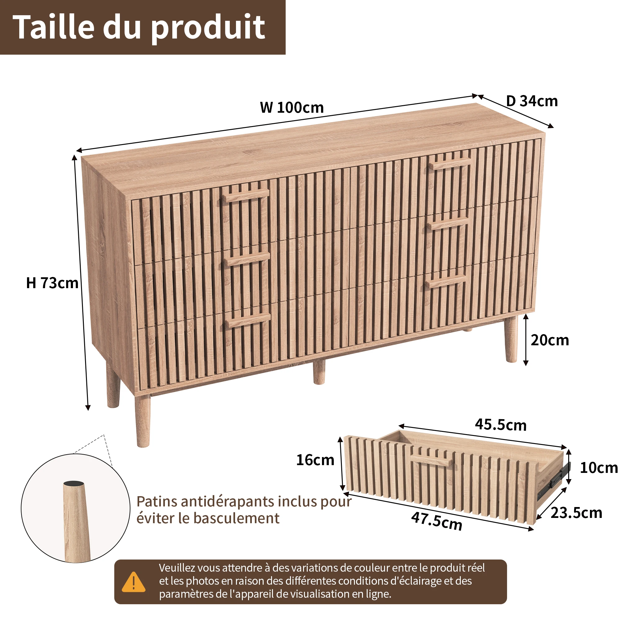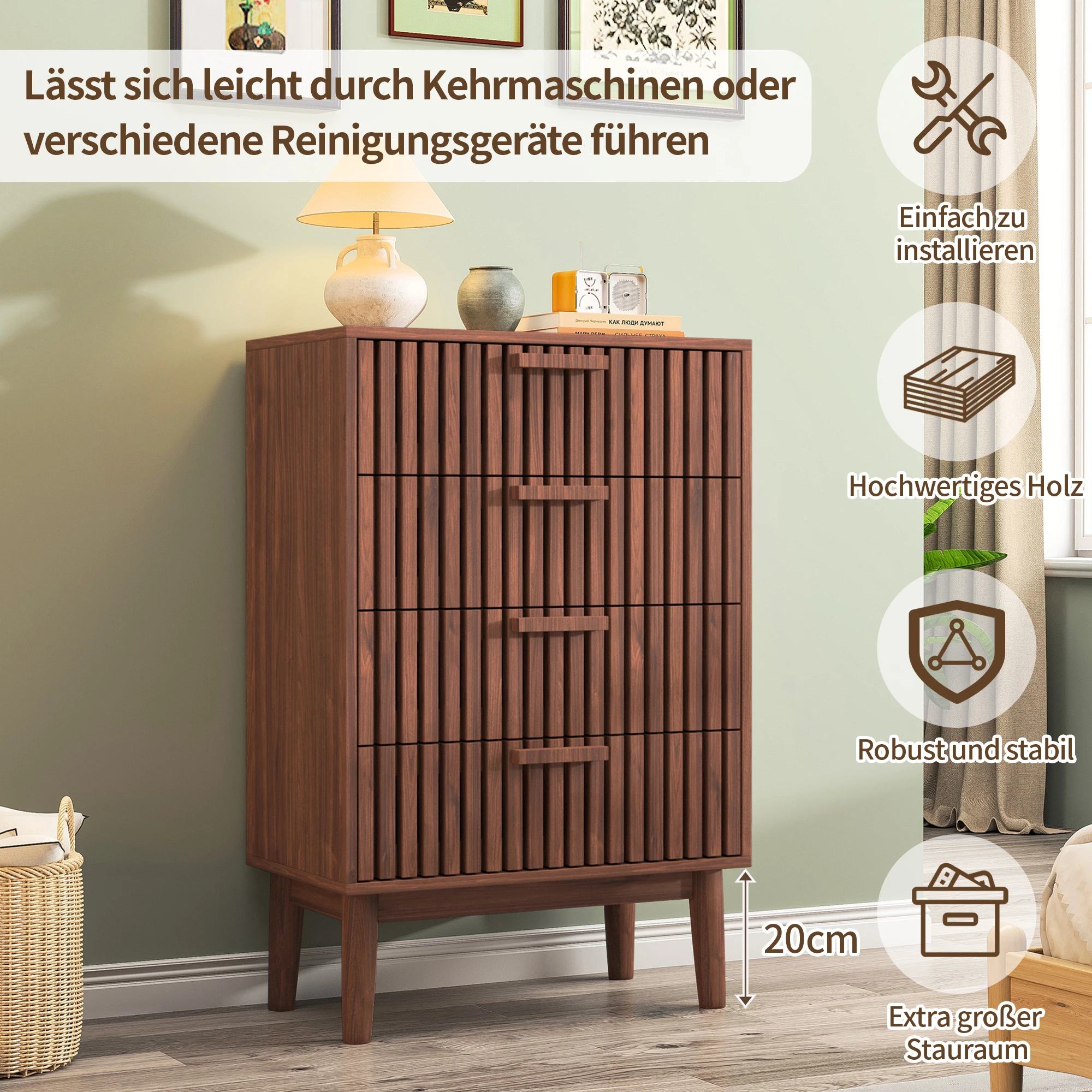 4.Высокие ножки стола: шкаф находится на расстоянии 20 см от земли, а подметальный робот может легко войти в нижнюю часть шкафа, чтобы избежать накопления пыли.В нижней части ножек стола имеются противоскользящие наклейки для защиты земли.