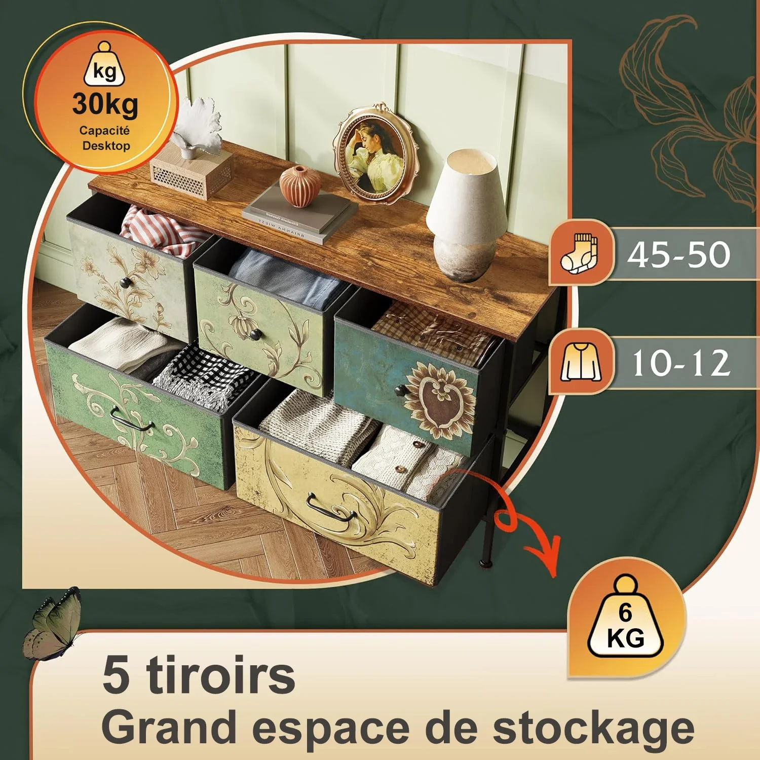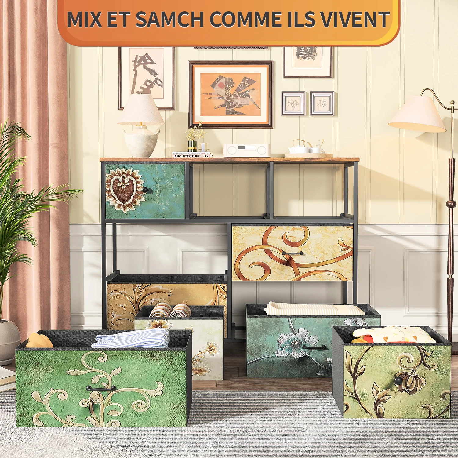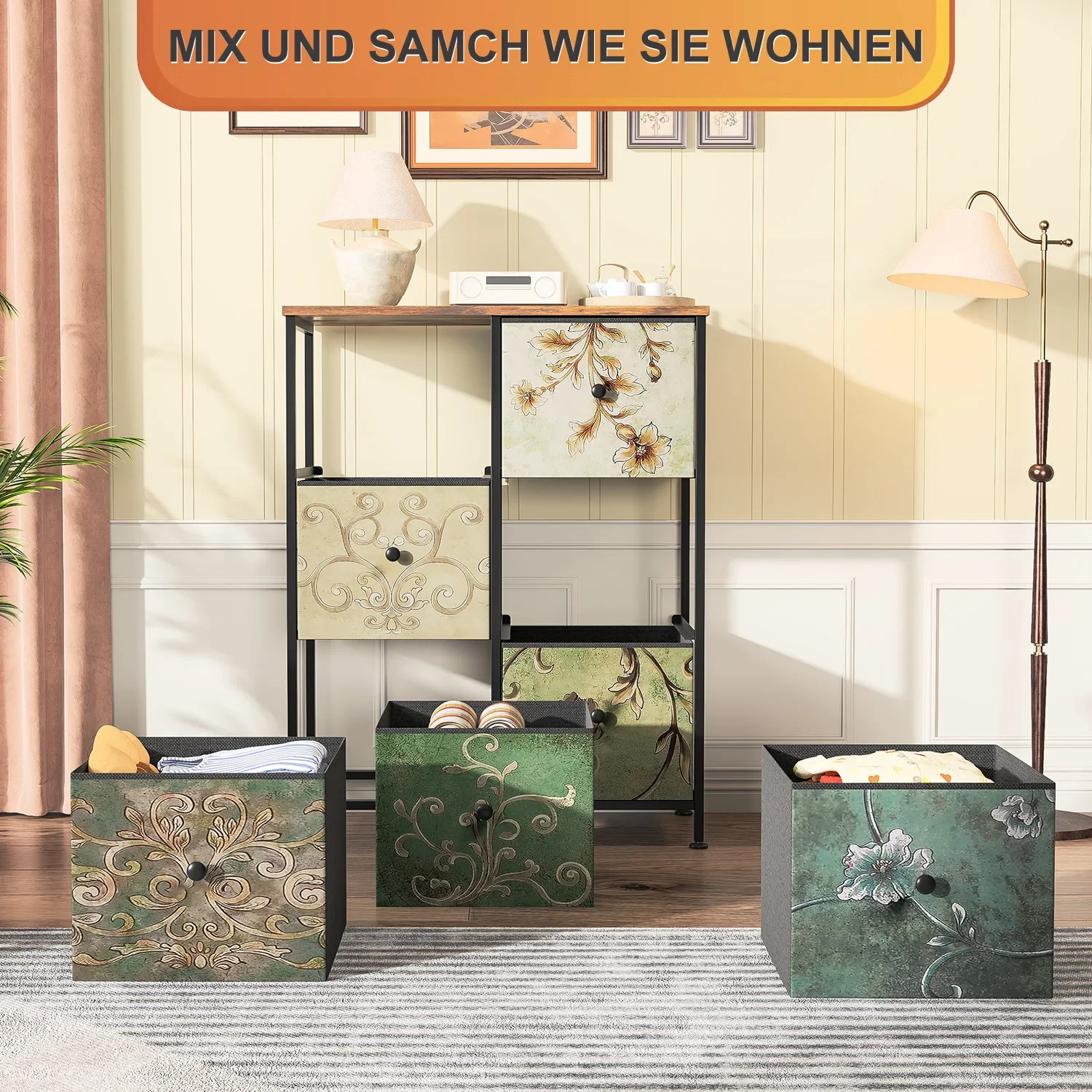 Rosahqnda Комод для спальни, металл + ткань Комод для шкафа, детской комнаты, прихожей, прихожей, тканевый ящик с цветочным узором