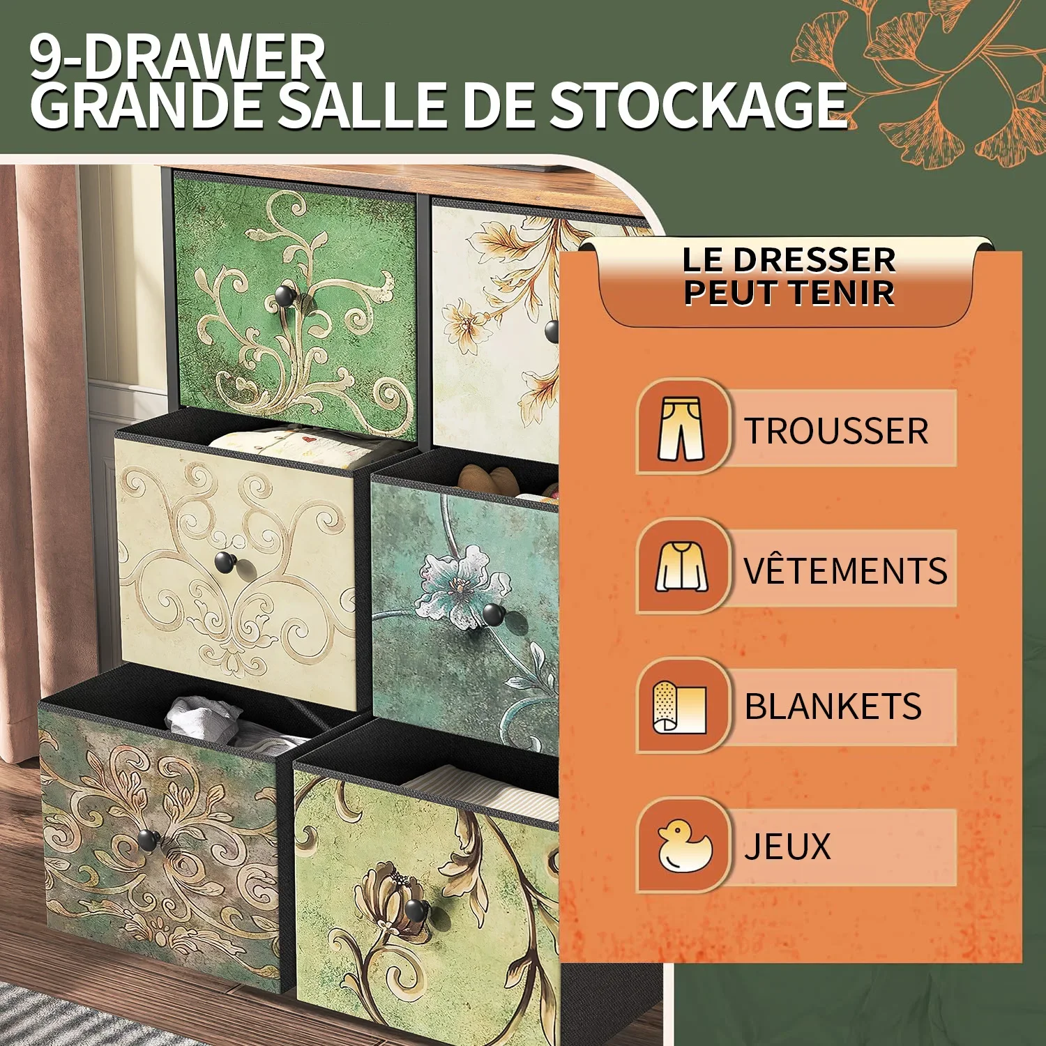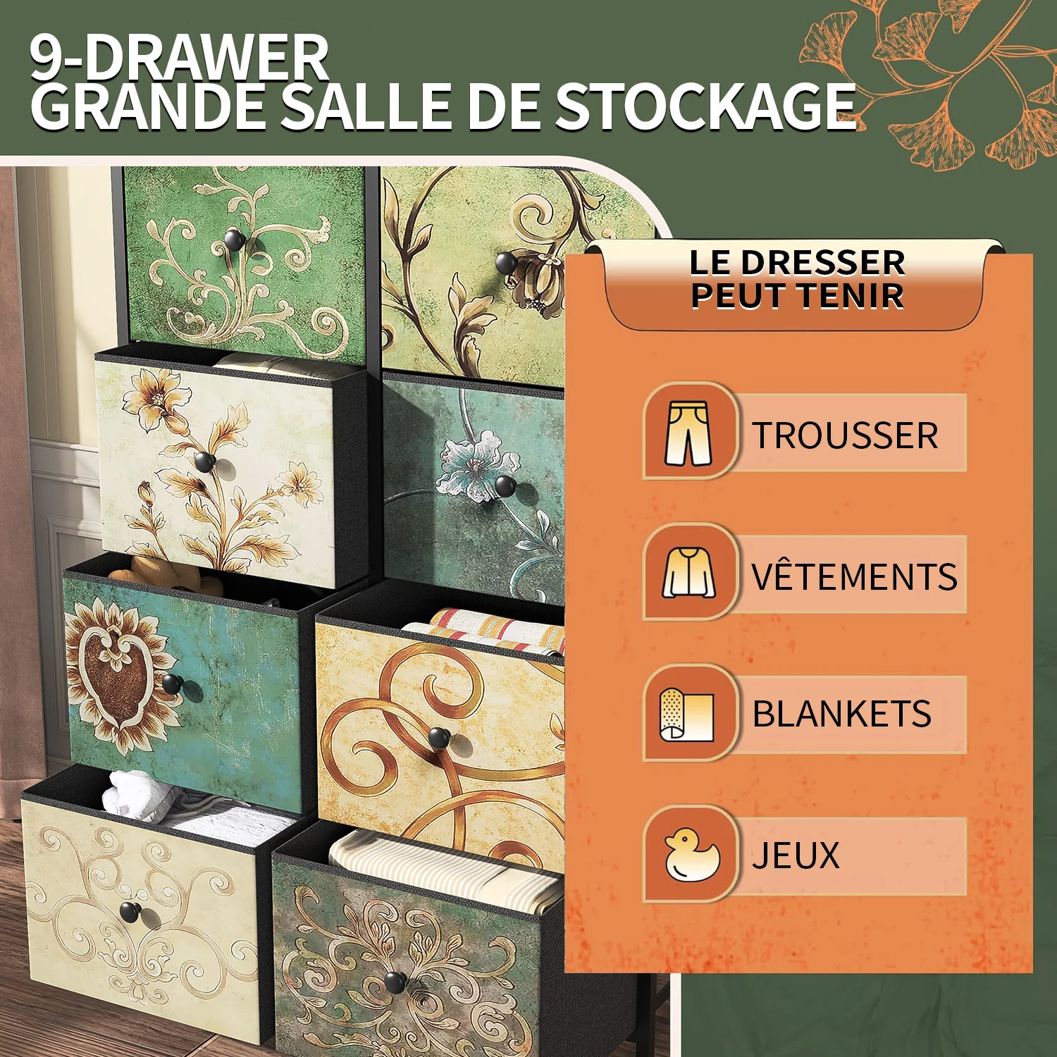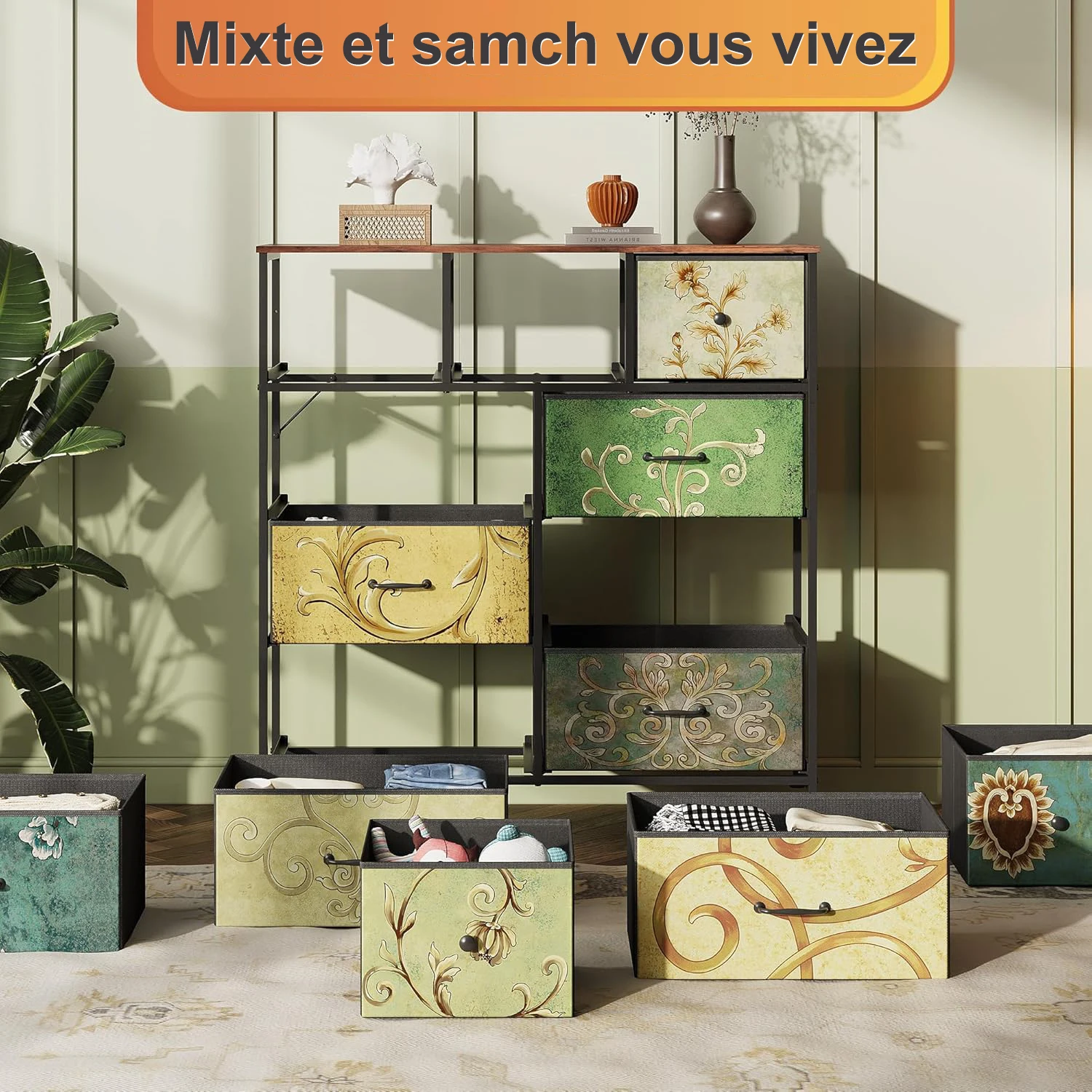 Rosahqnda Комод для спальни, металл + ткань Комод для шкафа, детской комнаты, прихожей, прихожей, тканевый ящик с цветочным узором