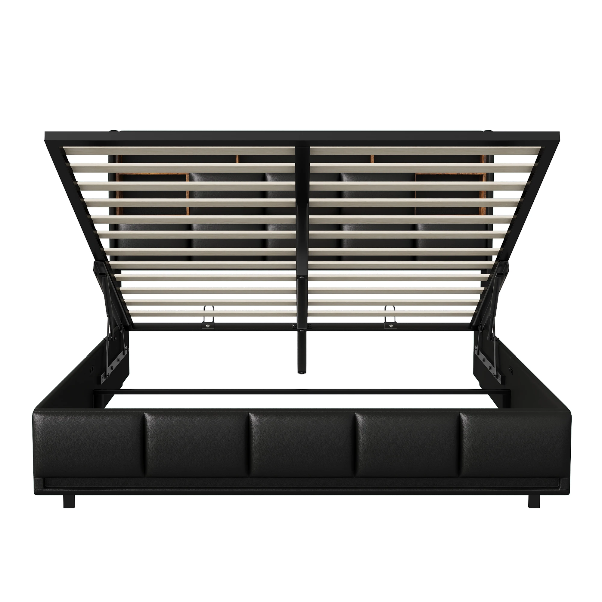 Rosahqnda Мягкая двуспальная кровать 160 x 200 см, гидравлическая кровать с коробкой, светодиодом и USB-зарядной станцией, пружинная кровать-коробка