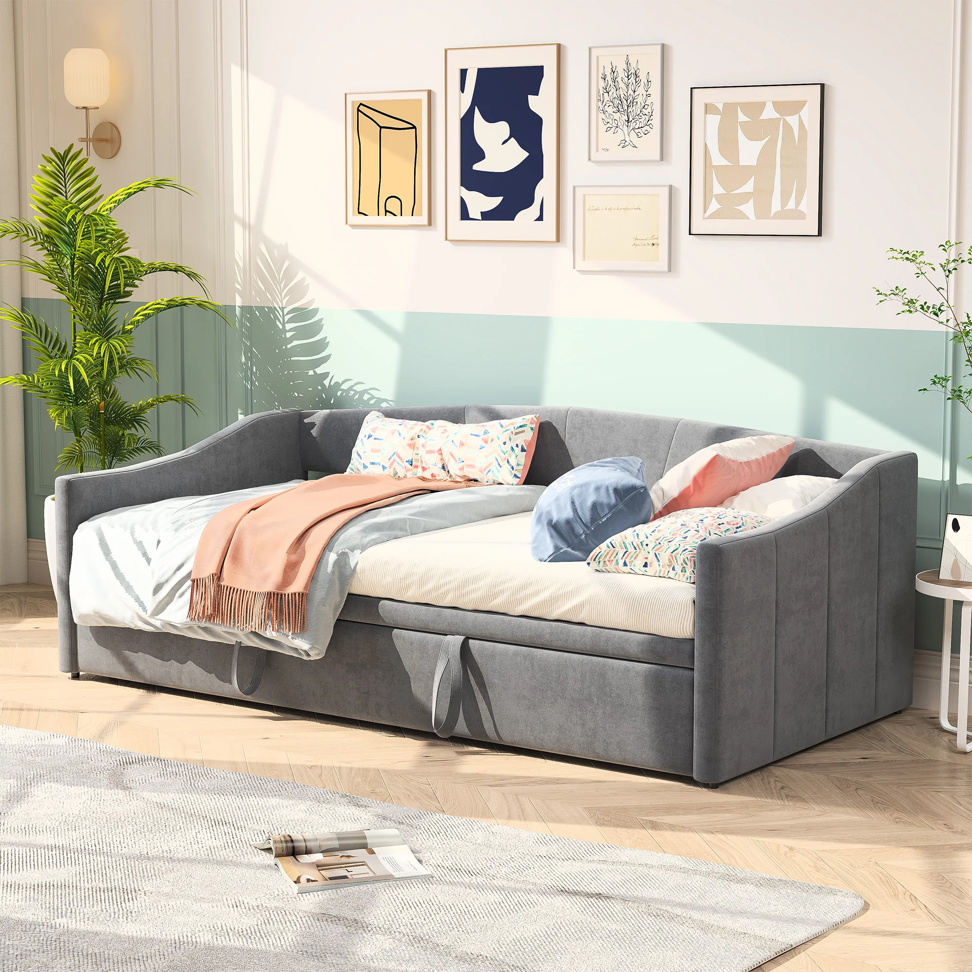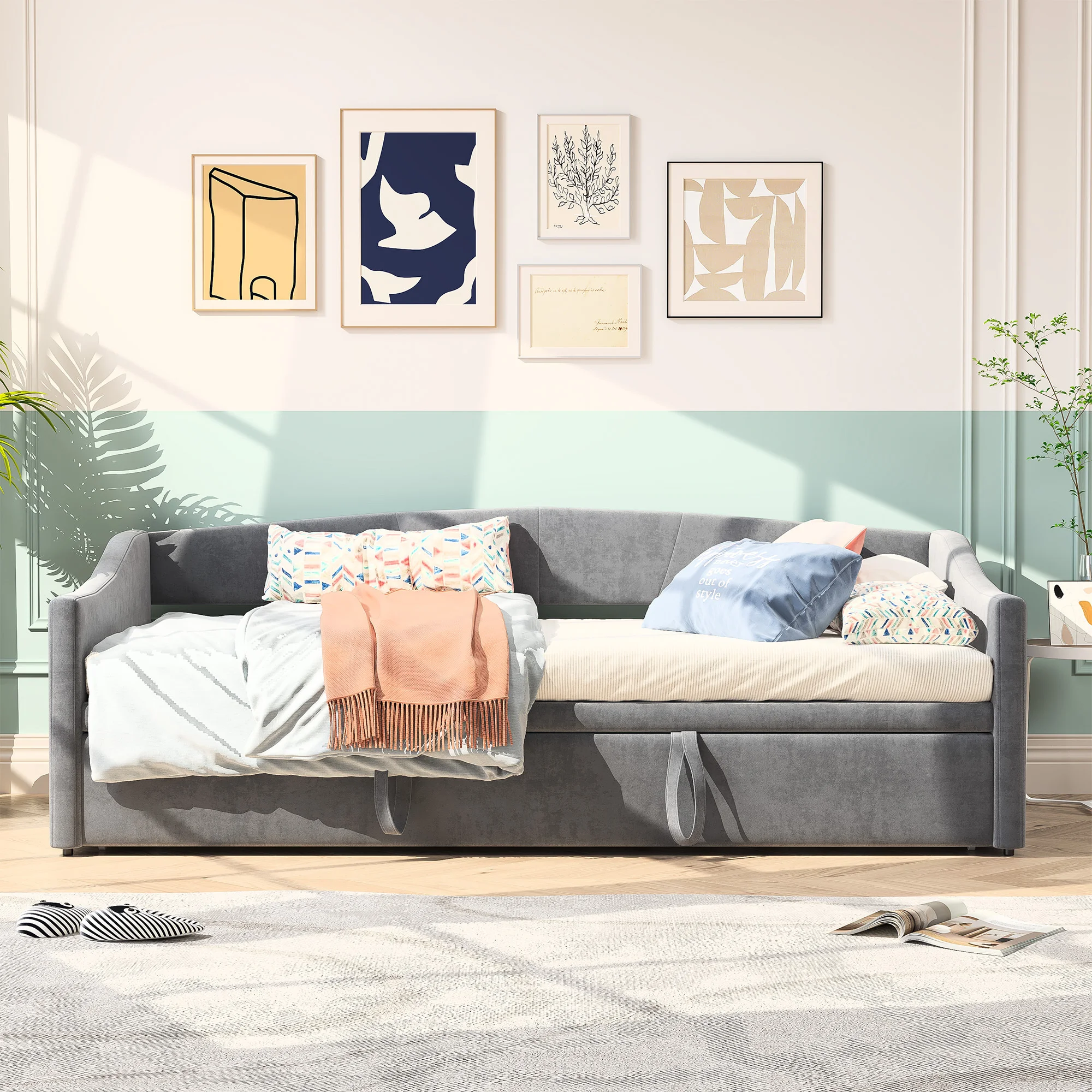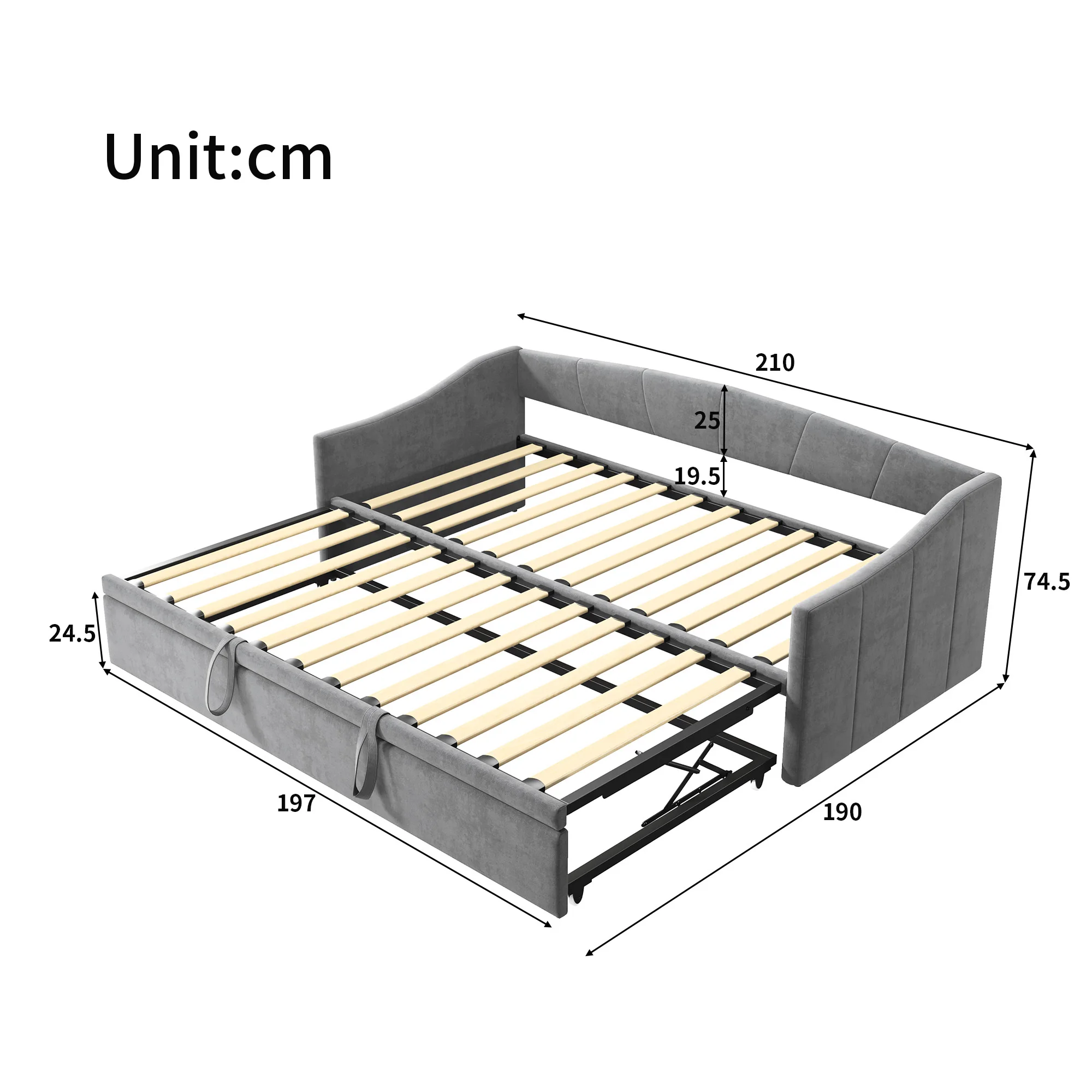 Этот выдвижной диван-кровать изготовлен из приятной для кожи бархатной ткани.Внутренняя часть изготовлена из высококачественного МДФ (сертифицирована FSC,Экологически чистый материал).Он безопасен и долговечен и обеспечивает хорошую воздухопроницаемость для комфортного сна.