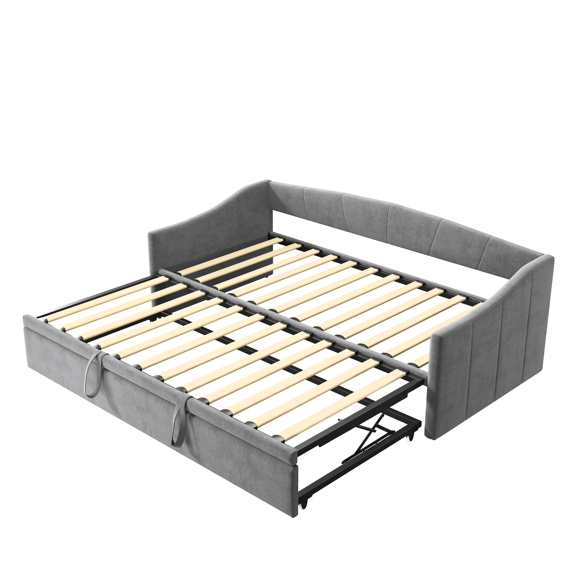 Мягкий, выдвижной диван-кровать на 2 человека оснащен прочными деревянными планками, удобной мягкой спинкой и двумя подлокотниками.Обратите внимание, что матрас в комплект не входит.Рекомендуемый матрас состоит из двух матрасов высотой 14 см.