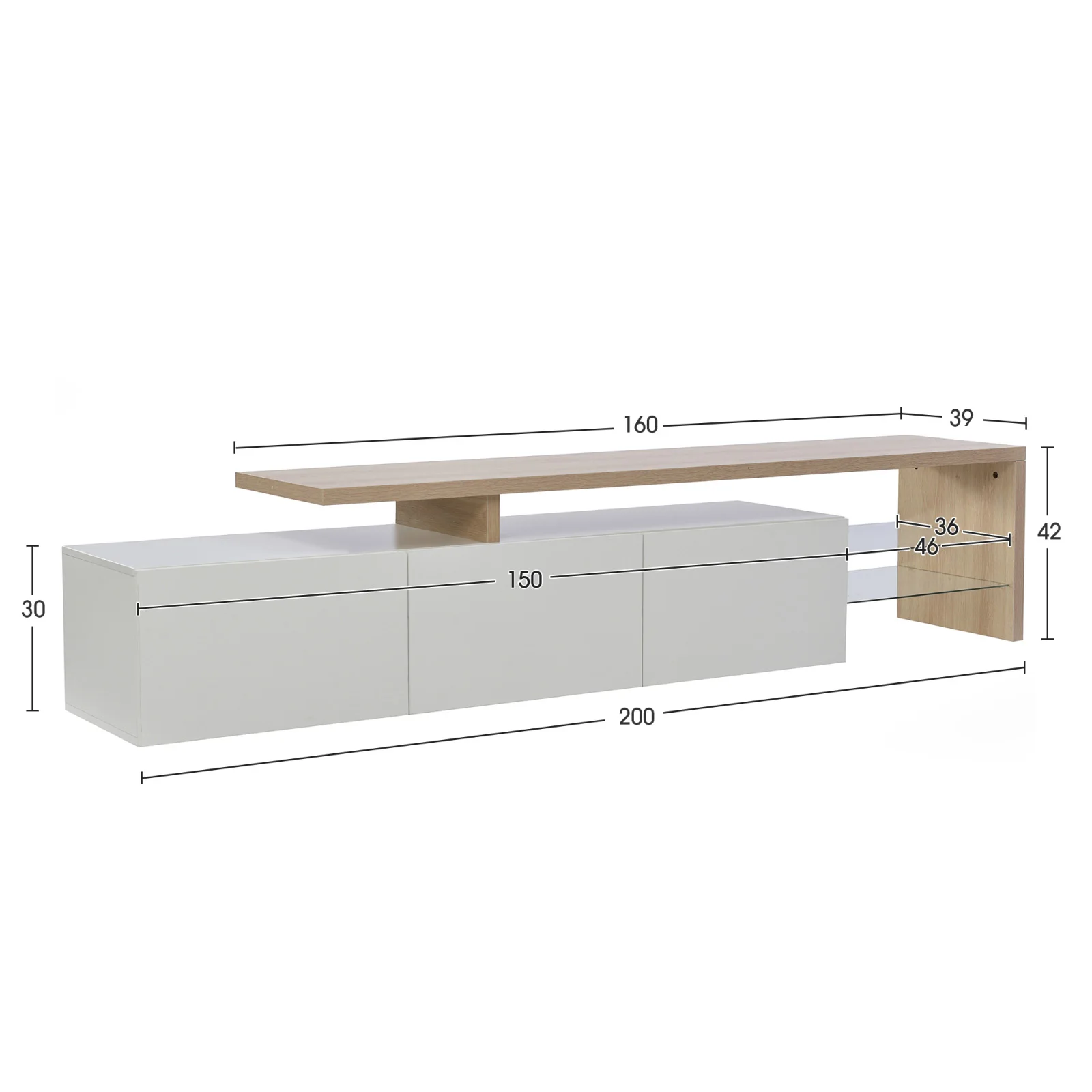 1.Наша стильная и функциональная подставка для телевизора станет идеальным решением для вашей бытовой электроники.Общая длина 197,5 см, глубина 39 см и высота 42 см — этот предмет мебели предлагает достаточно места для вашего телевизора, мультимедийных устройств и других предметов первой необходимости в гостиной.
