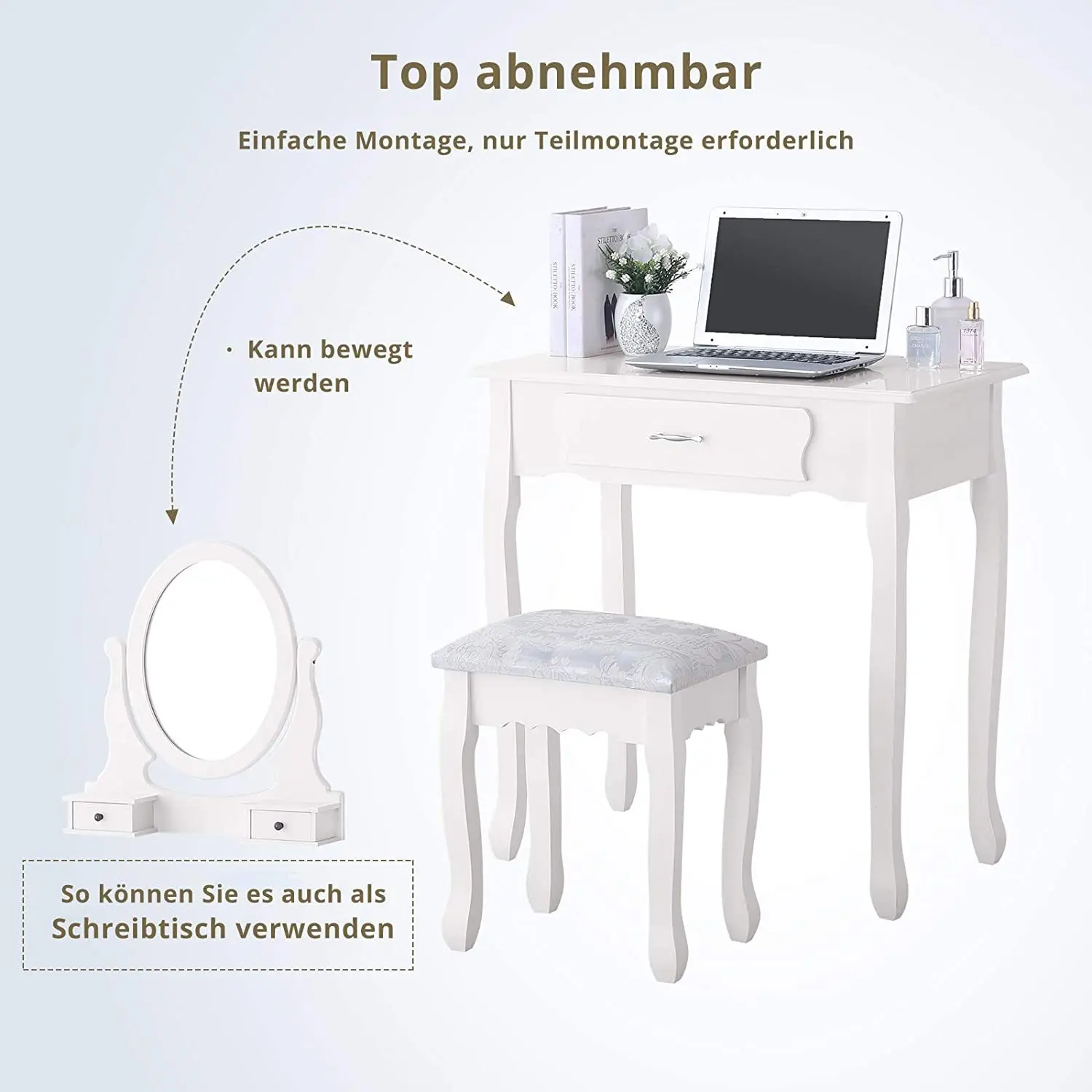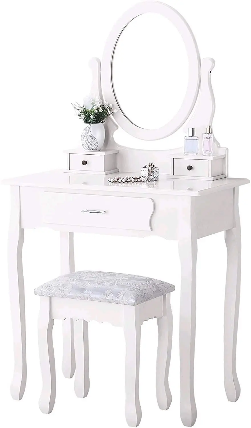 Этот туалетный столик с большим овальным зеркалом, которое может вращаться на 360 градусов и наклоняться под разными углами, позволяет вам найти идеальное отражение для вашей повседневной жизни.Будь то нанесение макияжа или прическа, он легко адаптируется к вашим потребностям.