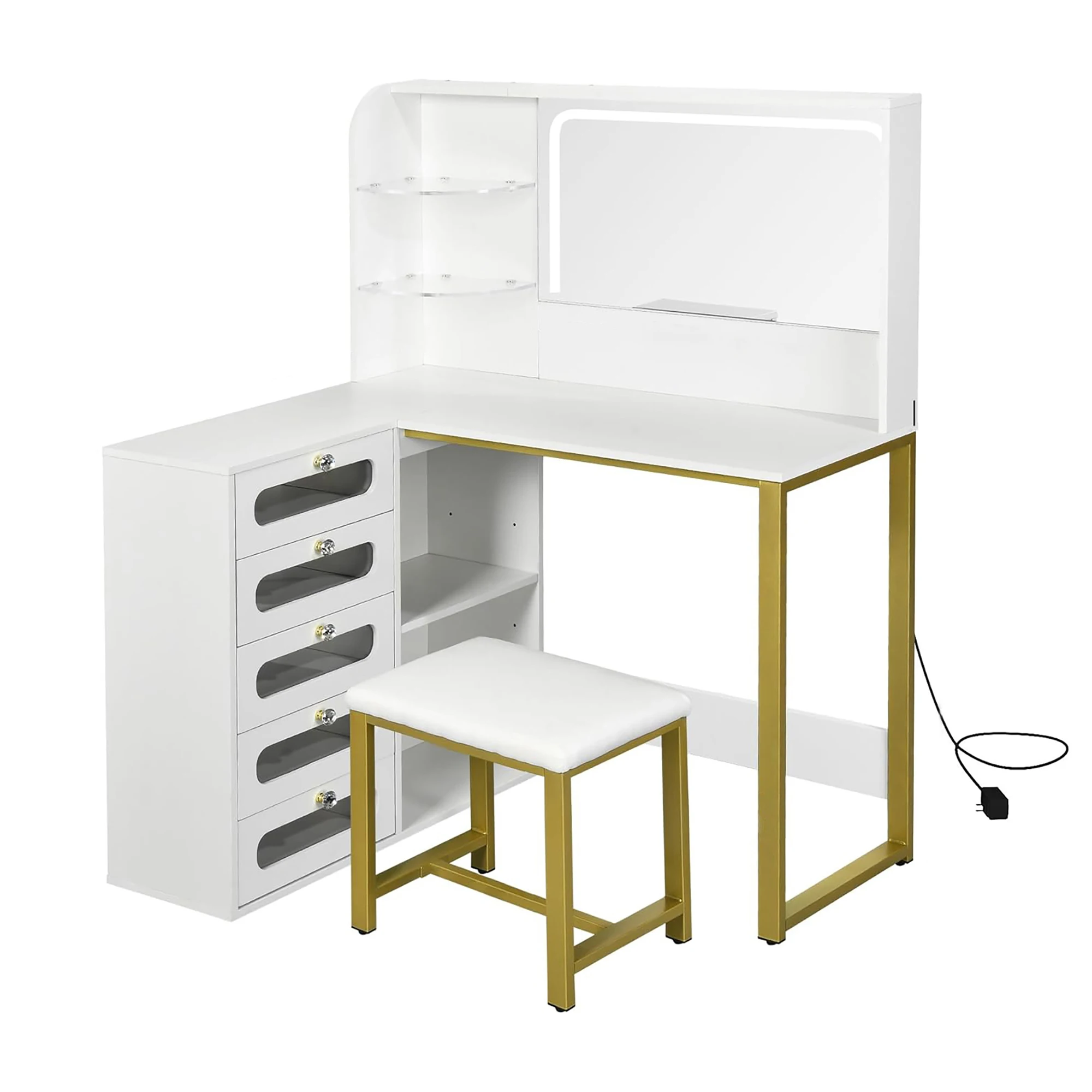 Rosahqnda Туалетный столик с зеркалом и туалетным столиком, Косметический столик, Туалетный столик для макияжа с ящиками, Современный, Белый