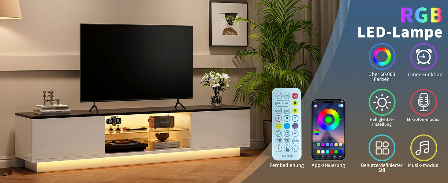 Будьте первым, кто оставил отзыв на “Rosahqnda ТВ-шкаф с 2 дверцами, 2 полками, низкая панель телевизора со светодиодной подсветкой, ТВ-доска для телевизоров до 65 дюймов для гостиной, спальни”