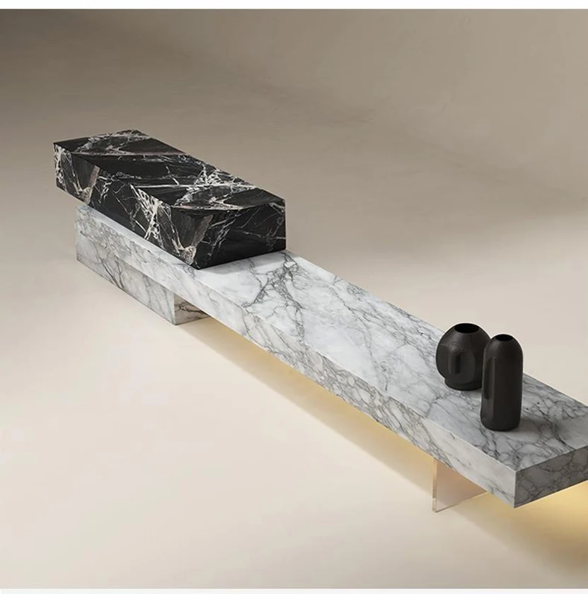 Роскошная итальянская ТВ-консоль из натурального мрамора, водостойкая и устойчивая к царапинам, сертифицированная EO, настраиваемый развлекательный центр виллы