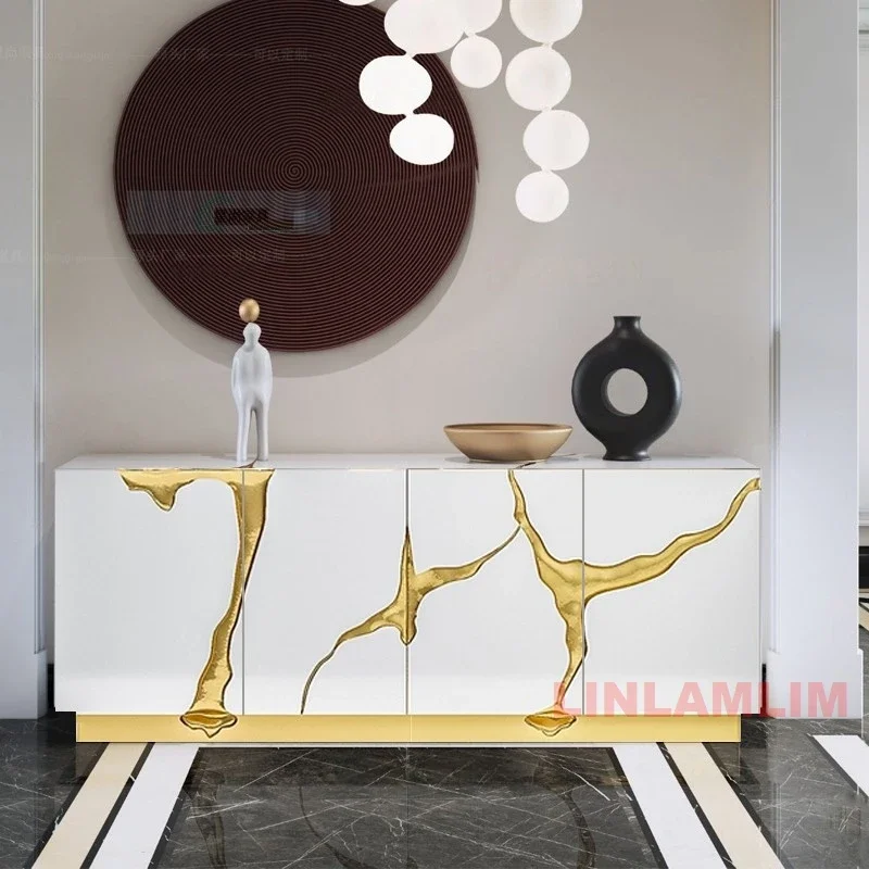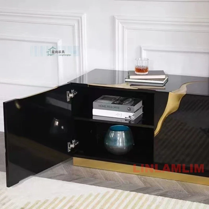 Роскошный черный/белый сервант/подставка под телевизор с золотым акцентом, глянцевый шкаф для хранения вещей для гостиной или столовой