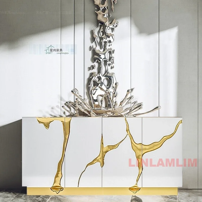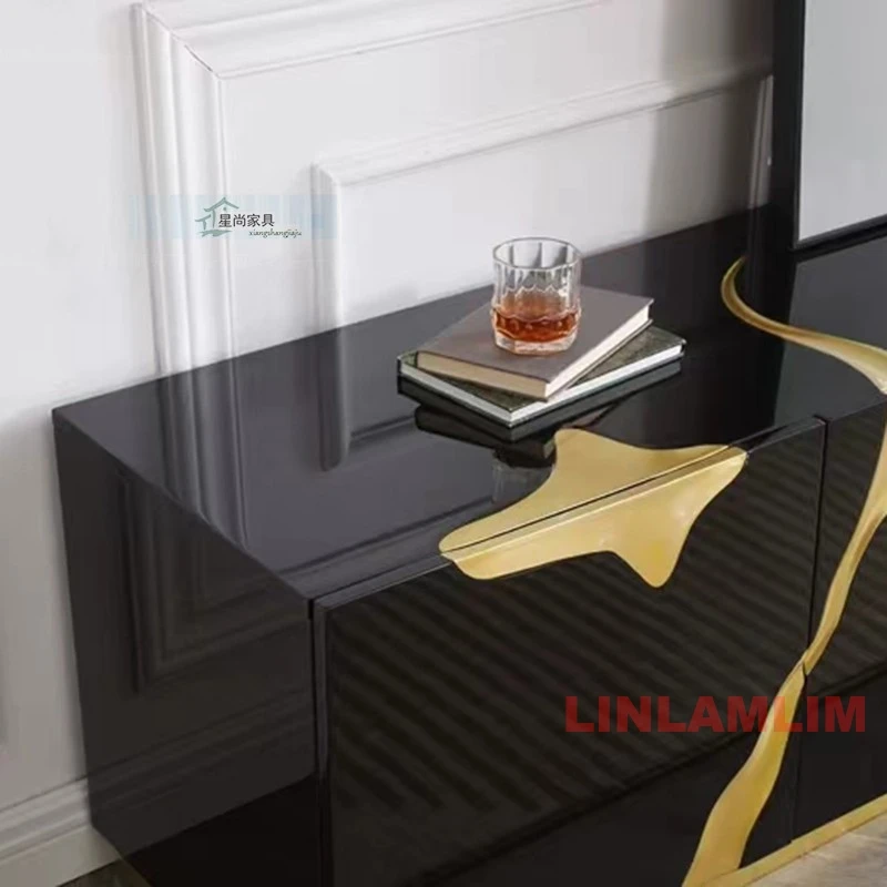 Роскошный черный/белый сервант/подставка под телевизор с золотым акцентом, глянцевый шкаф для хранения вещей для гостиной или столовой