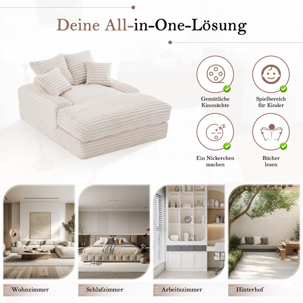 2.Этот меридиан размером 137 см (Д) × 175 см (Ш) ×63 см (В) предлагает достаточно места для лежания и отдыха.Независимо от того, смотрите ли вы любимые телесерии, читаете книгу или вздремнули, это идеальное место для абсолютного комфорта.