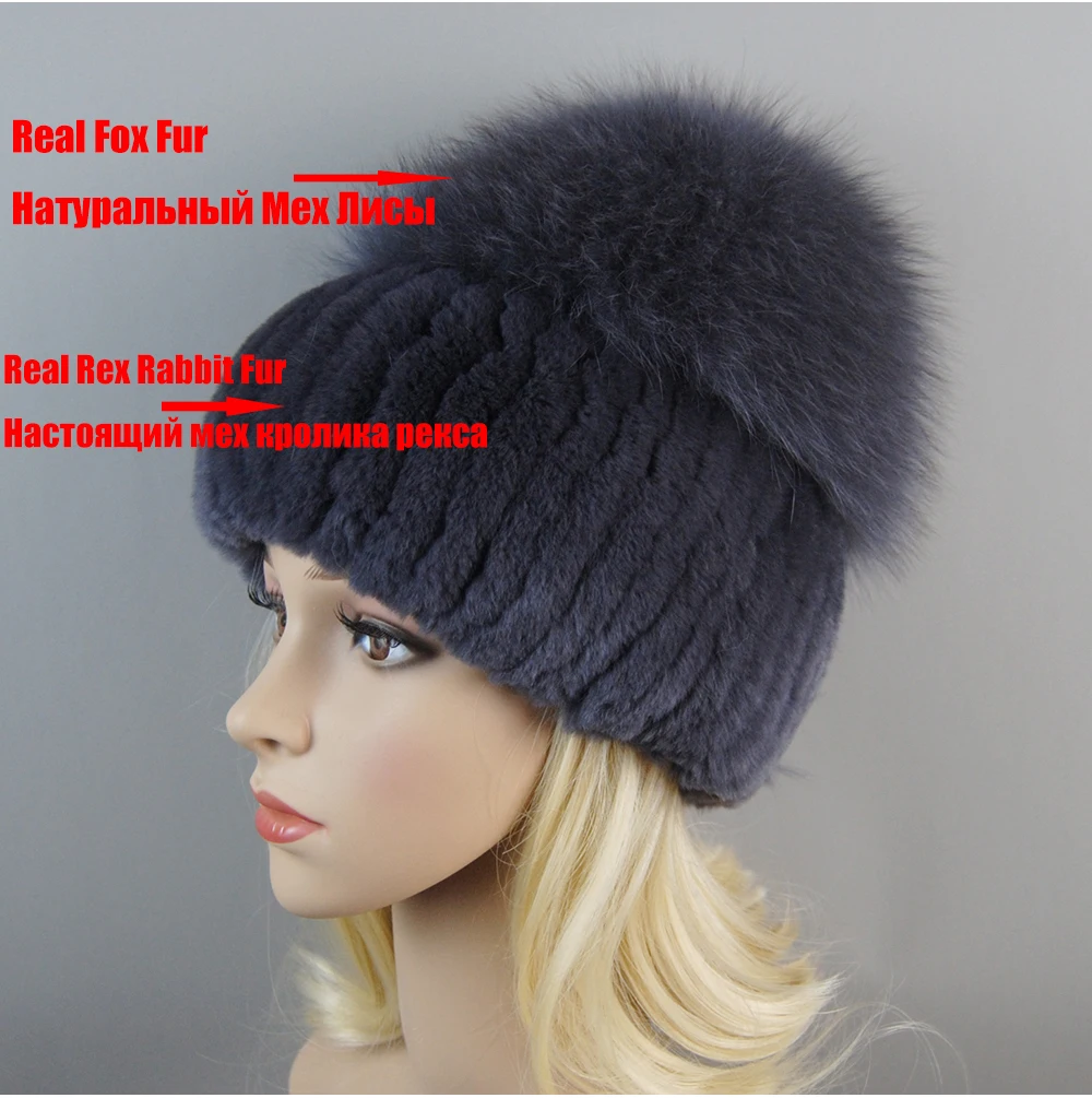 Россия, новый стиль, женские шапки из натурального лисьего меха, шапка для девочек, натуральный рекс, кроличий мех, шапка с черепами, вязаная зимняя шапка из натурального меха