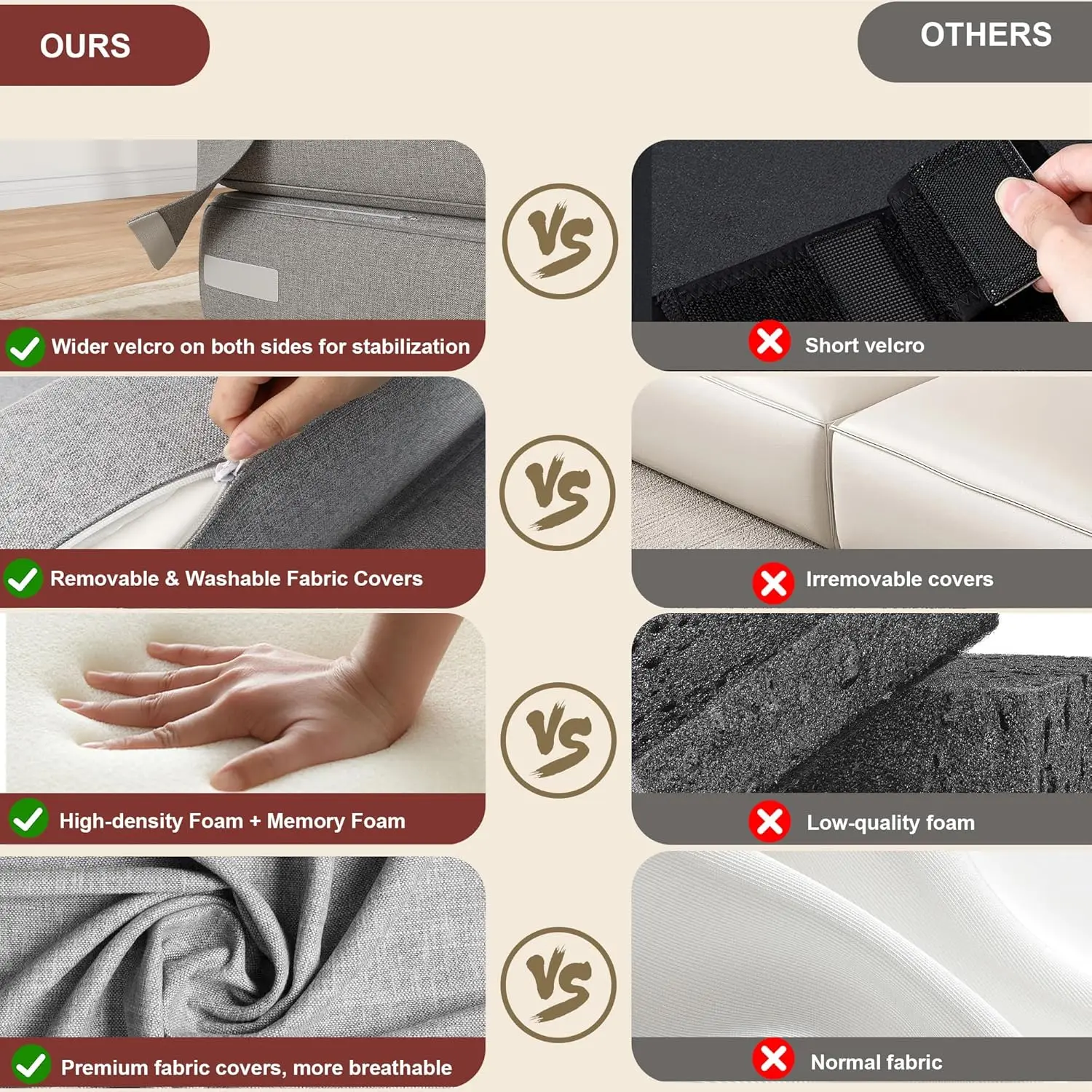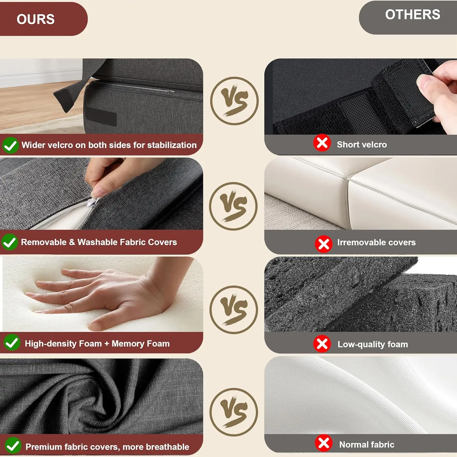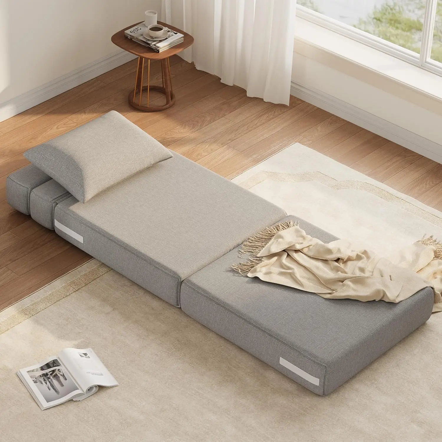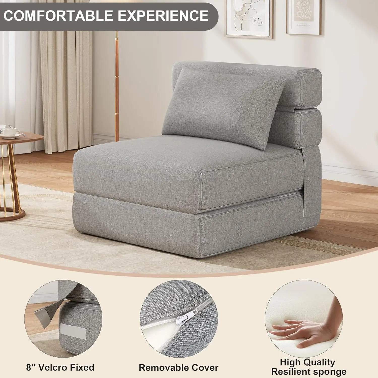 [Высококачественный материал и комфорт] – этот складной диван-кровать изготовлен из пены с эффектом памяти высокой плотности, обеспечивающей мягкую, равномерную амортизацию и быстрый отскок.Он повторяет форму вашего тела и распределяет точки давления без провисания, обеспечивая баланс мягкости и поддержки.Дышащий съемный льняной чехол прочный, легко чистится и обеспечивает гибкий комфорт — идеально подходит для чтения, отдыха, йоги или в качестве поясничной поддержки.