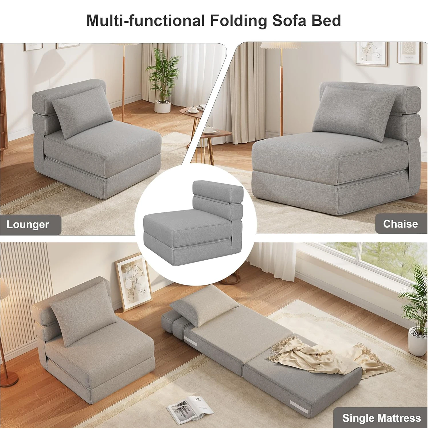 [Универсальный многофункциональный дизайн] – этот складной диван-кровать мгновенно превращается в диван, кресло для отдыха, матрас или подставку для ног, что делает его подходящим для работы, отдыха, сна или развлечения гостей.Его компактная универсальность решает проблемы в небольших помещениях и позволяет динамично планировать комнаты в квартирах, общежитиях, автофургонах или студиях.