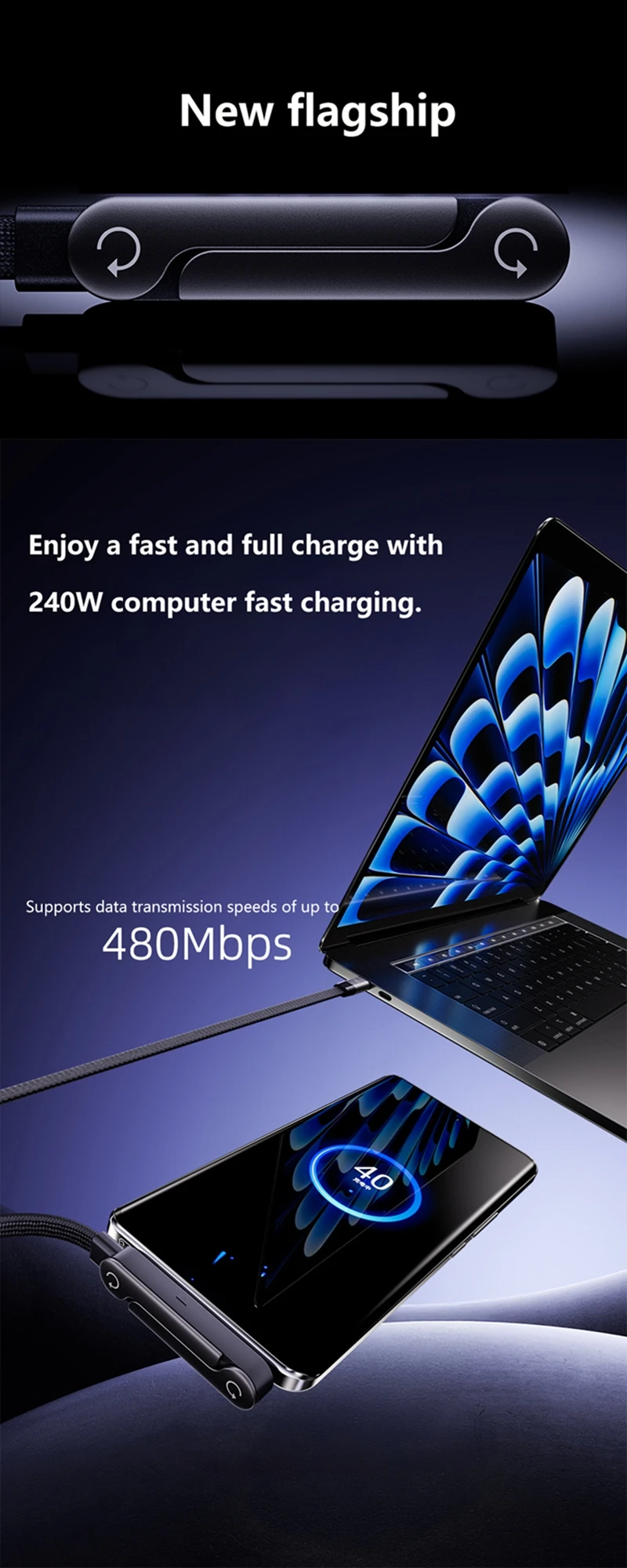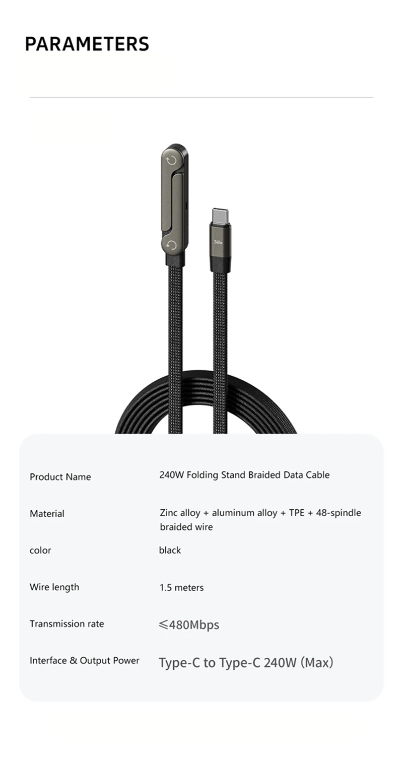 Название продукта: складной держатель мощностью 240 Вт с плетеным кабелем