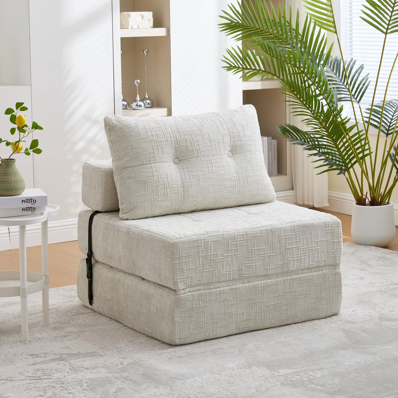 Складной матрас Urban Luxe, напольный диван, складной матрас, раскладной диван, напольный диван, с подушкой и спинкой, синель, бежевый