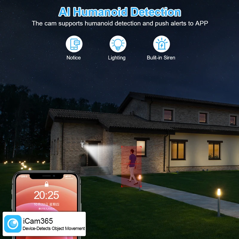 Быстро находит человеческие цели и немедленно отправляет уведомления приложения на ваш телефон, чтобы вы могли видеть, что происходит где угодно.