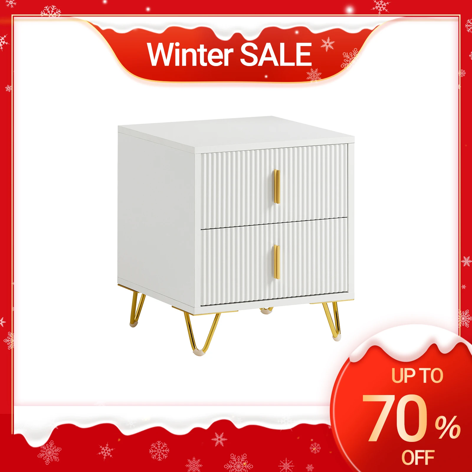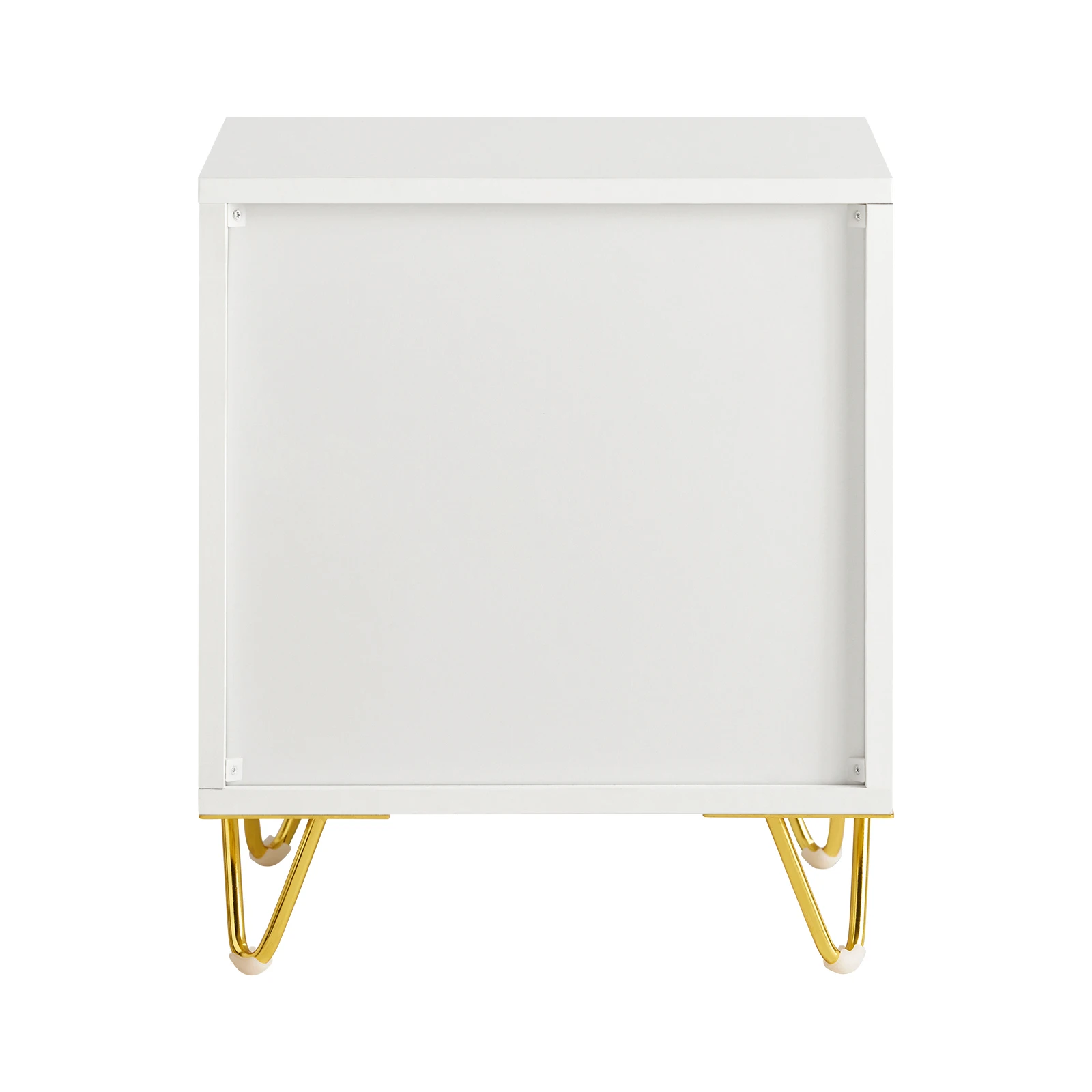 Классический белый цвет и золотые металлические ручки придают прикроватной тумбочке современный и элегантный вид, который идеально впишется в любую комнату.