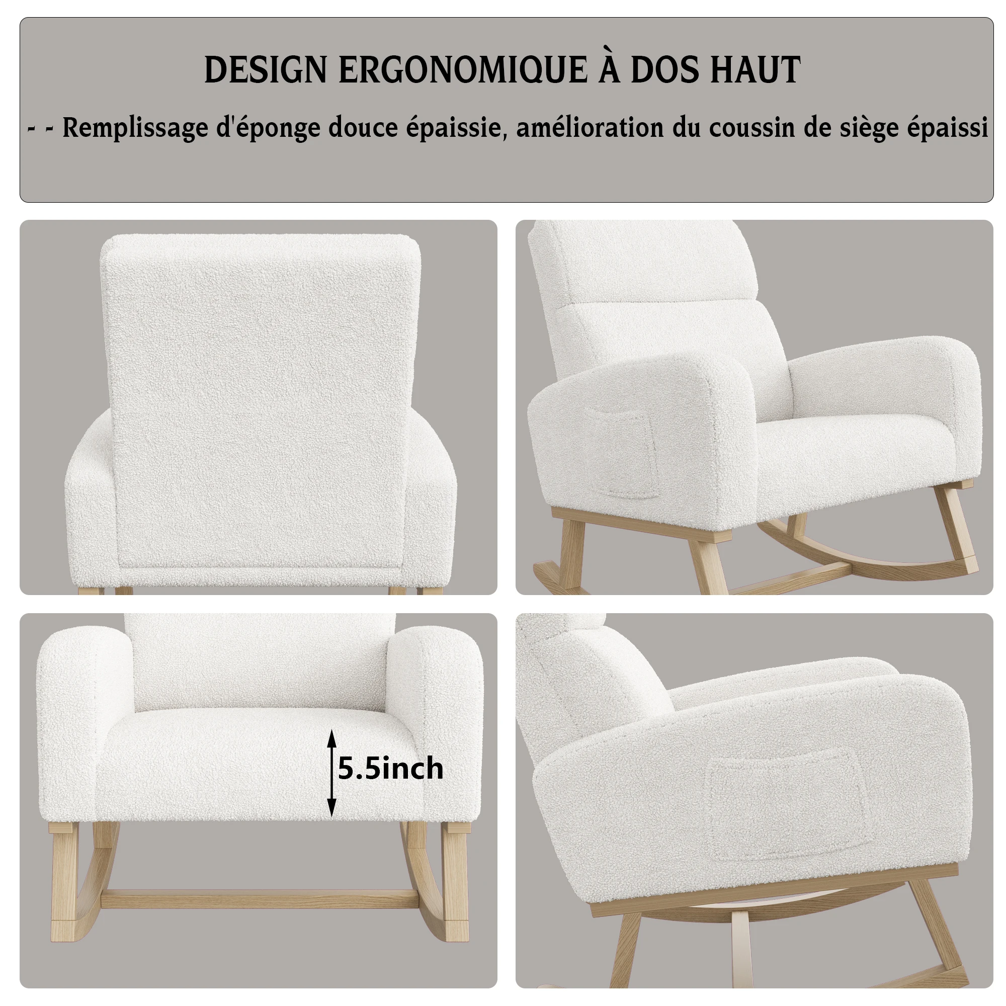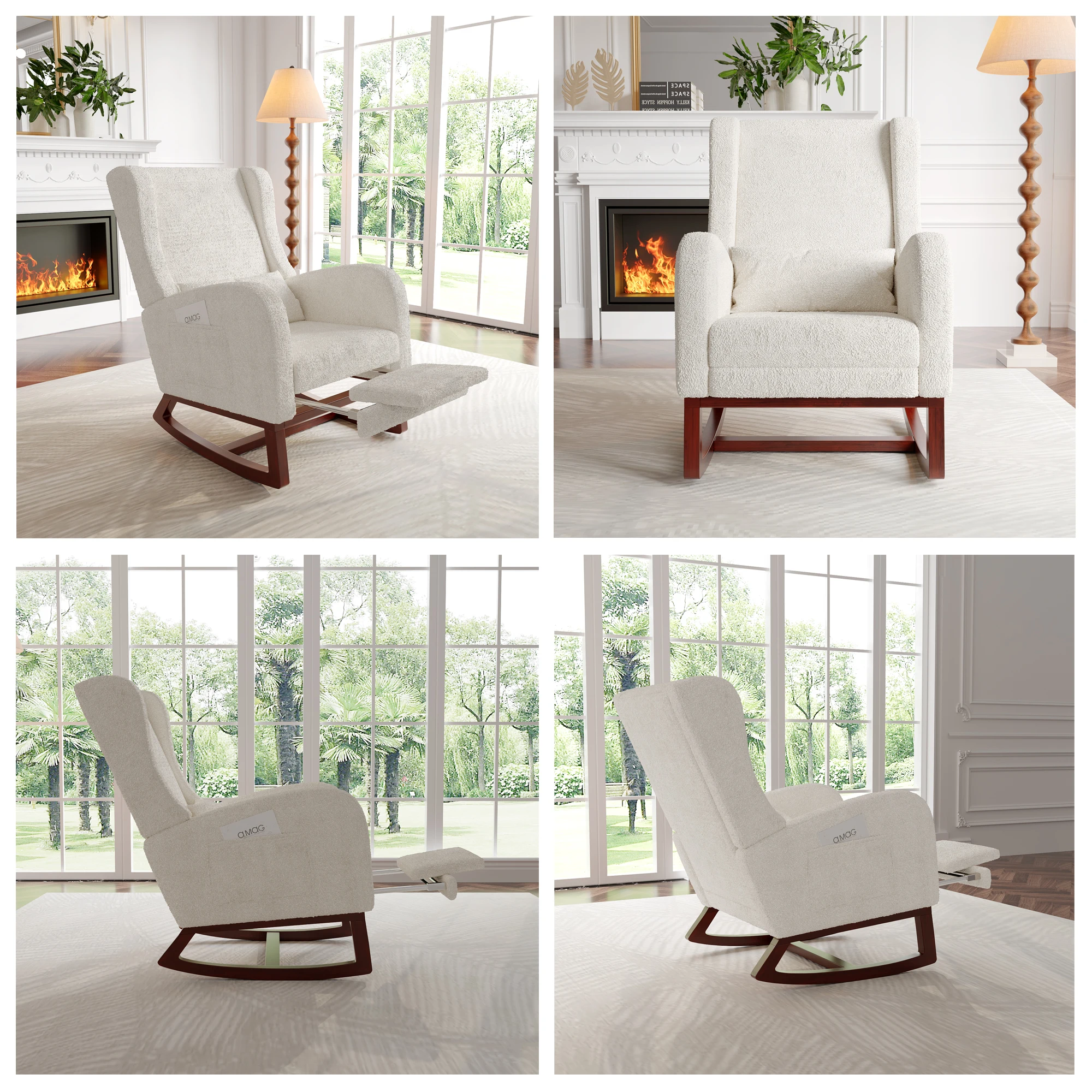 2.Конструкция подставки для ног: ее уникальной особенностью является наличие выдвижной подставки для ног, которую можно свободно регулировать в соответствии с вашими потребностями (вы можете снять или втянуть подставку для ног).Читаете ли вы, отдыхаете или дремнули, вы сможете найти наиболее удобную позу.Подставка для ног также изготовлена из матового бархата для общего комфорта и комфорта.3.Функция кресла-качалки с плавным движением вперед и назад: легким нажатием кресло может начать мягко качаться, обеспечивая расслабляющее и комфортное ощущение.Это покачивающееся движение помогает расслабить тело и разум и снять стресс, что делает его особенно подходящим для отдыха дома после напряженного дня.