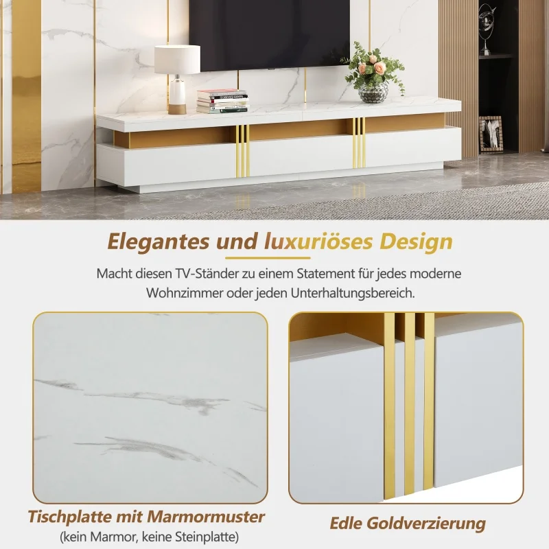 Современный недорогой шкаф для телевизора, мраморный внешний вид, ТВ-доска, ТВ-приставка, три ящика 200X40X42CM и 1 кабель для управления
