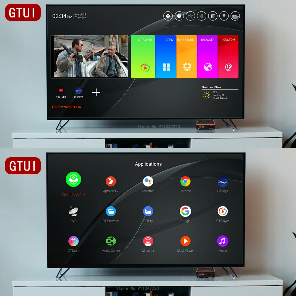 7. Система Gt ui, предустановлены дополнения gtstore.Prime-video, disney plus, онлайн-фильмы и т. д.Чат по Skype, Пикаса, мерцание, Facebook