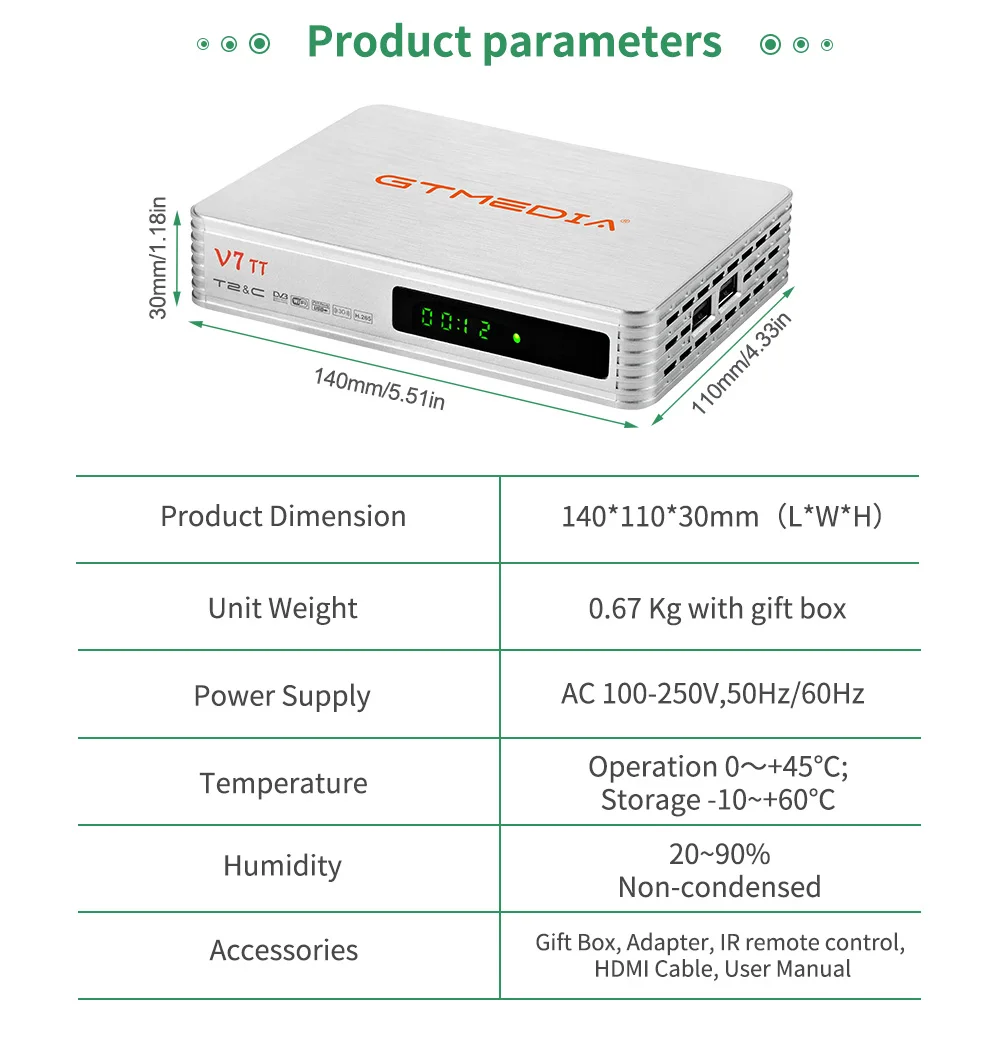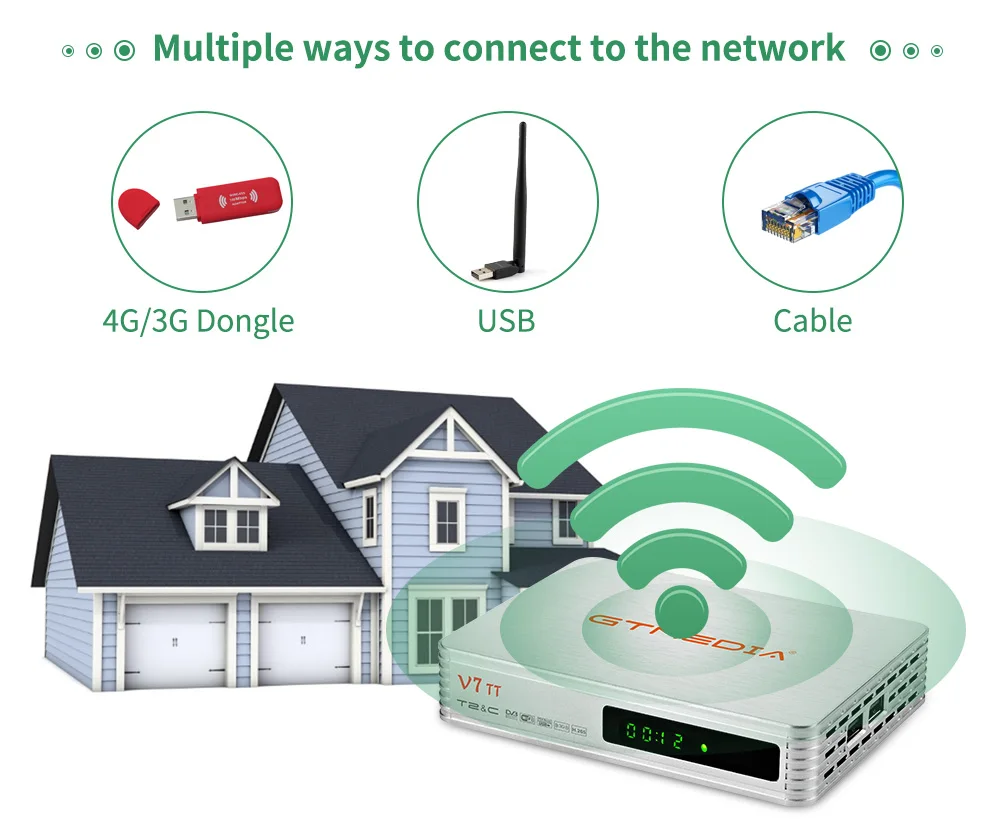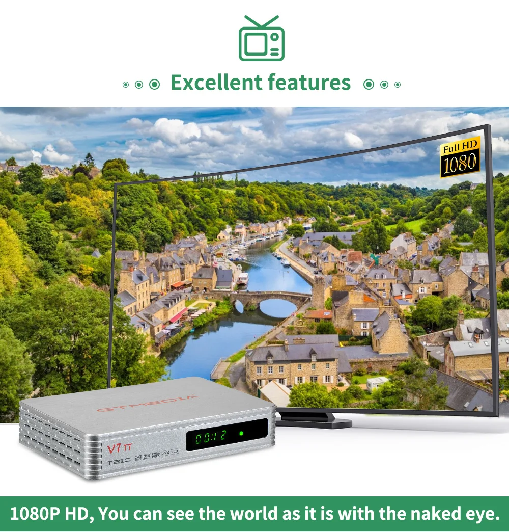Спутниковый ресивер GTMEDIA V7 TT DVB-T/T2/-C 1080P FHD H.265 HEVC 10 бит с USB WIFI PVR Ready Multi PLP Поддержка CCAM/Newcam